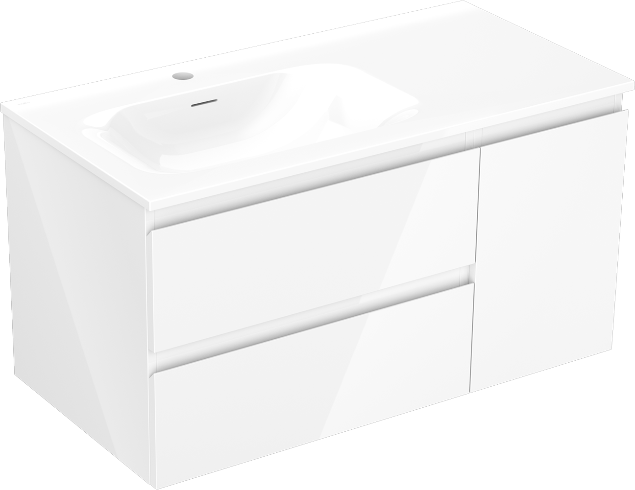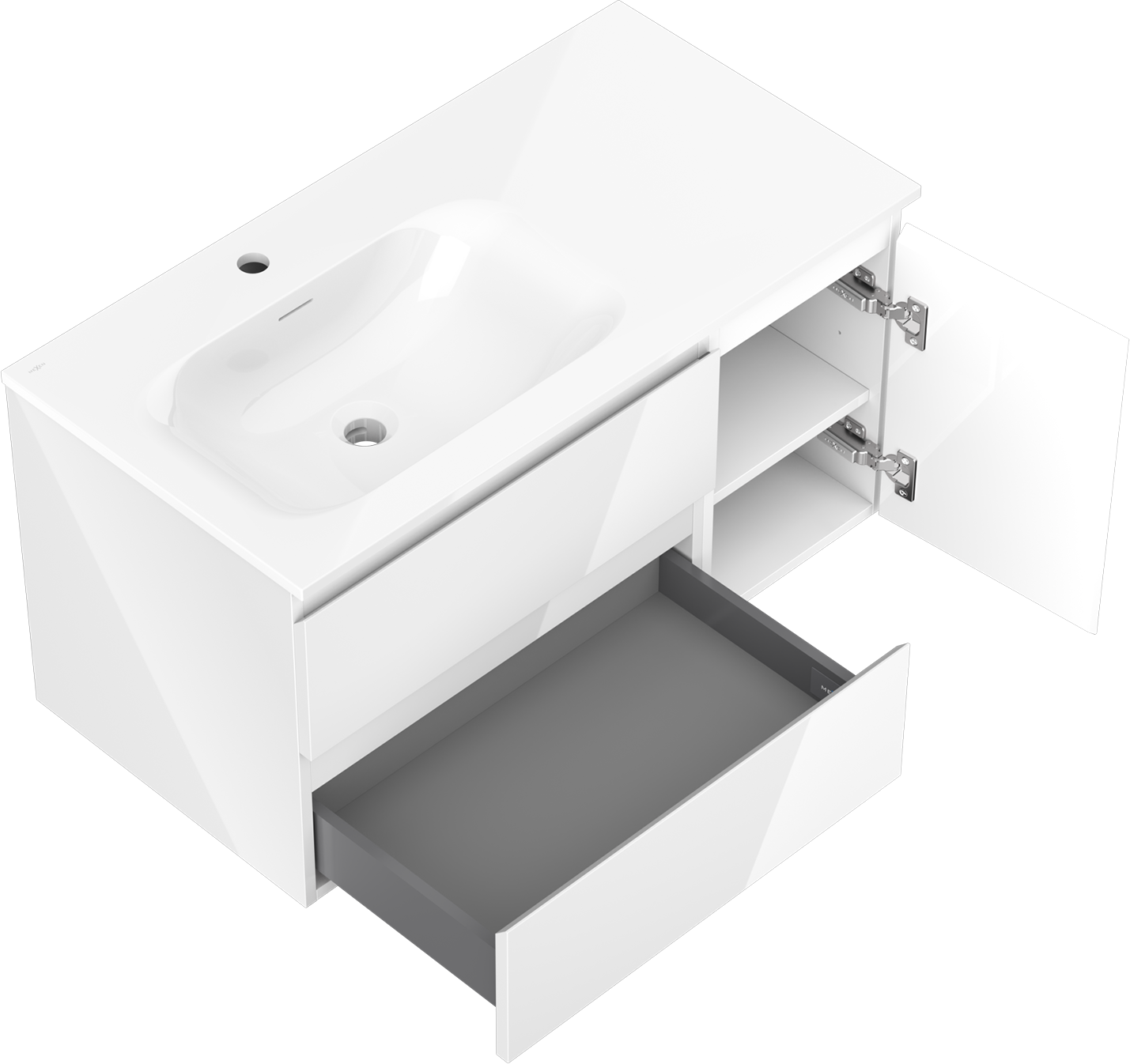 Mexen Orio badkamerkast 90 cm met wastafel Vela links, 2S, 1D, wit glans - 91A13-09047-3-BBFFF00-W23L00