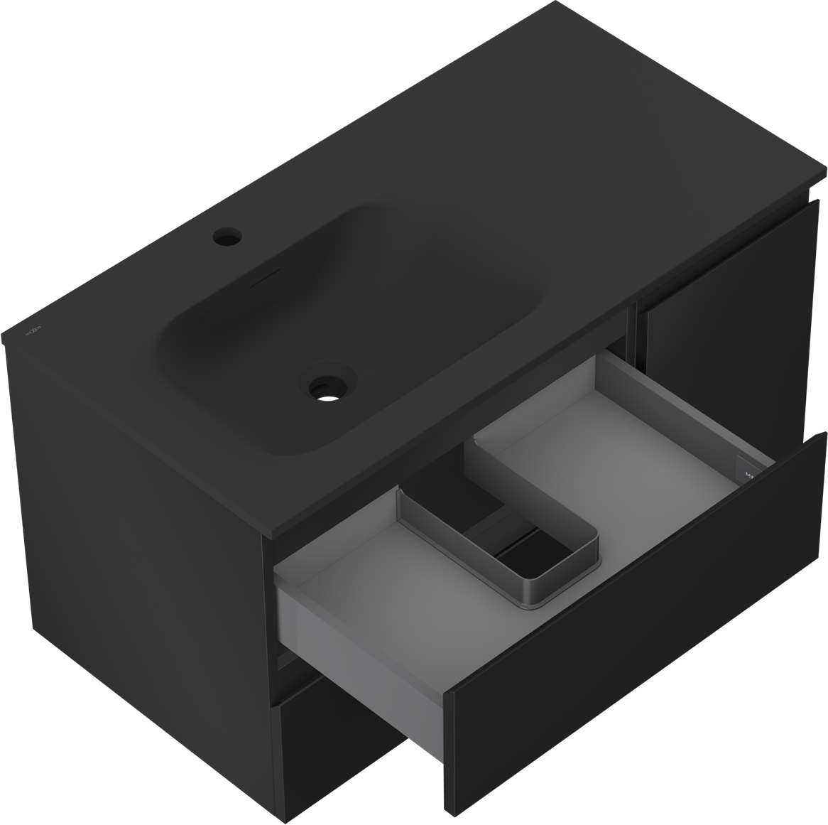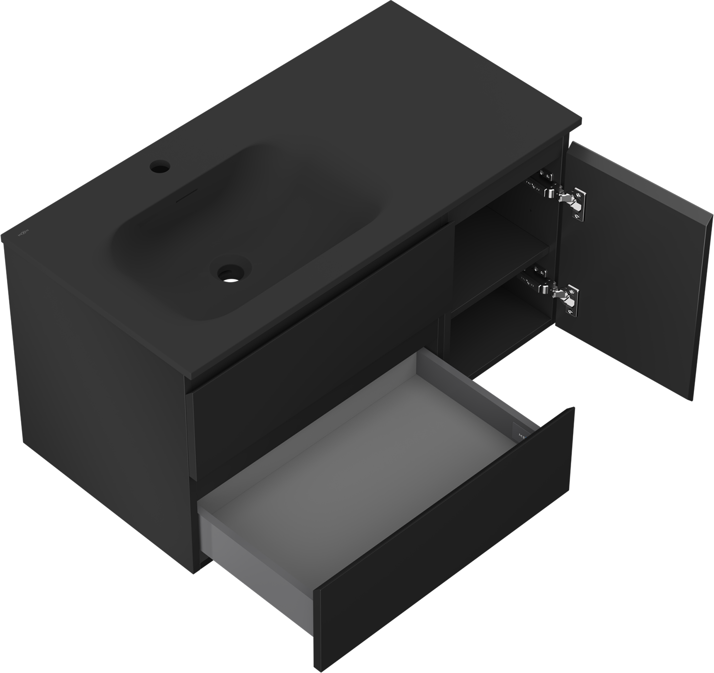 Mexen Orio badkamerkast 90 cm met wastafel Vela links, 2S, 1D, zwart mat - 91A13-09047-3-BBFFF71-W23L71