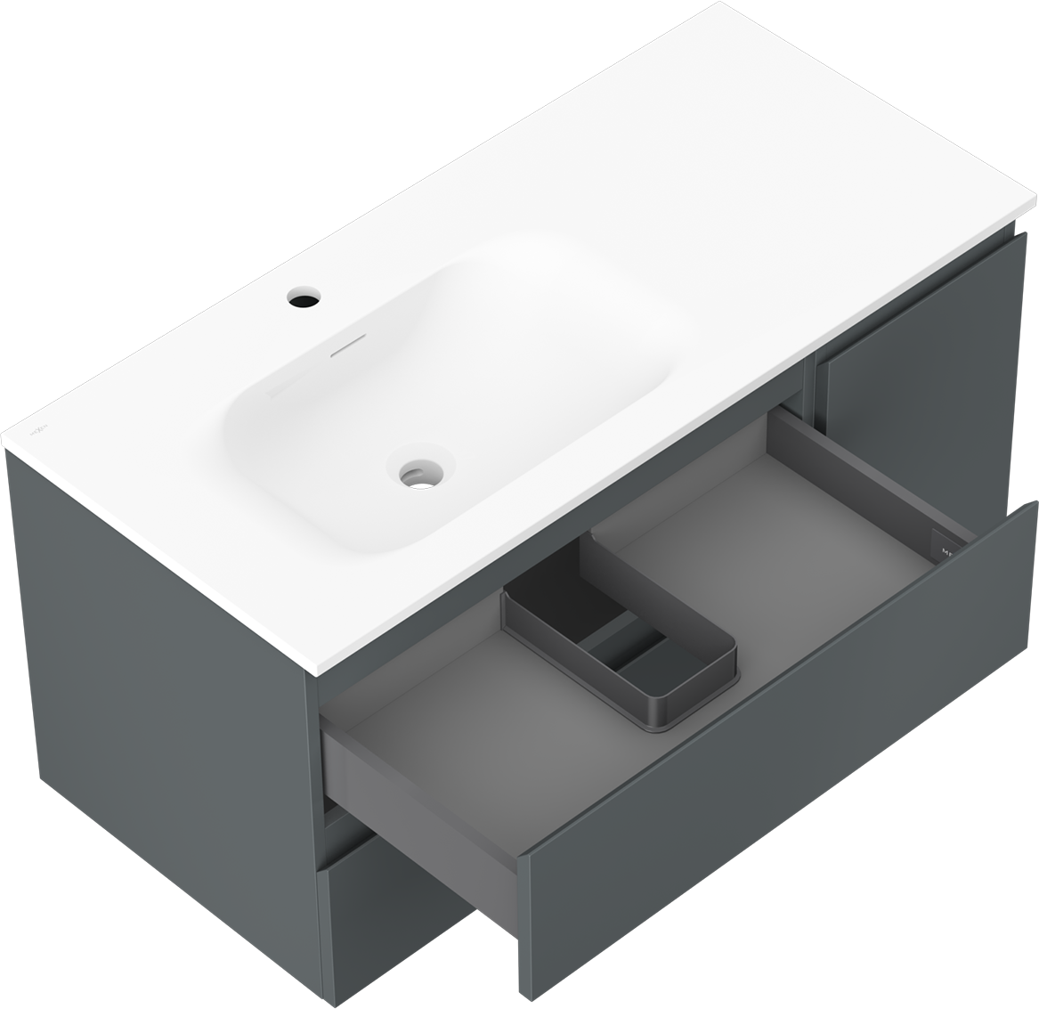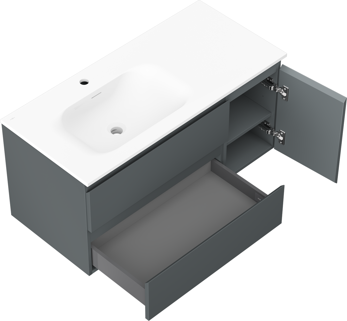 Mexen Orio badkamerkast 100 cm met wastafel Vela links, 2S, 1D, grafiet mat/wit mat - 91A13-10047-3-BBFFF66-W23L01