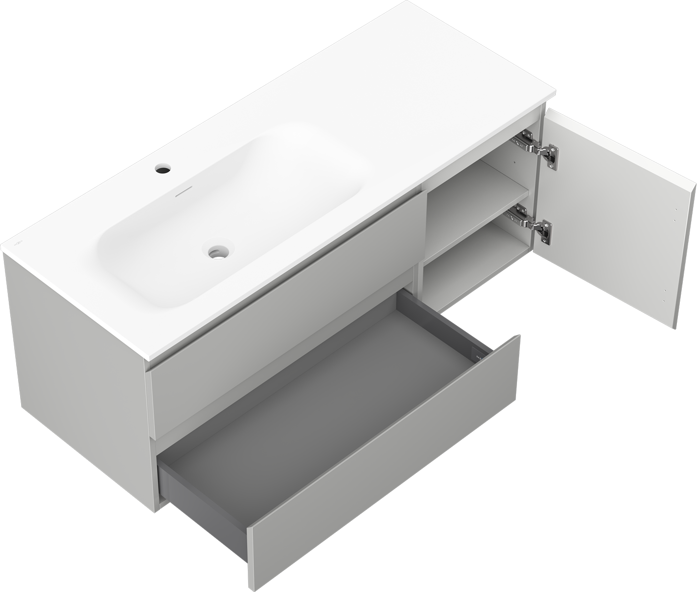 Mexen Orio badkamerkast 120 cm met wastafel Vela links, 2S, 1D, grijs mat/wit mat - 91A13-12047-3-BBFFF62-W23L01