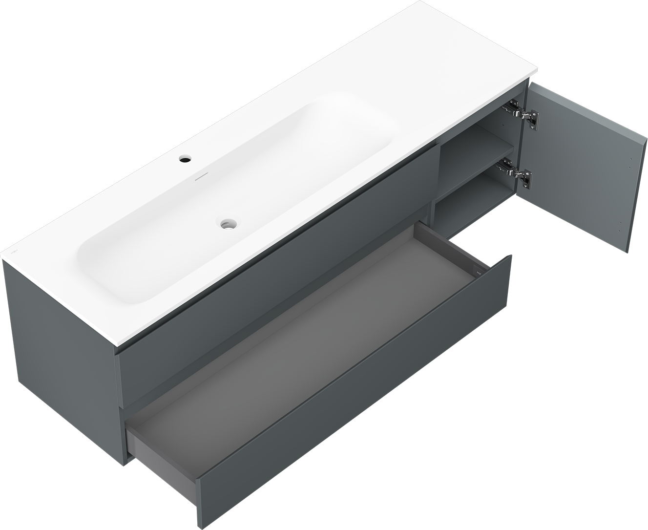 Mexen Orio badkamerkast 160 cm met wastafel Vela links, 2S, 1D, grafiet mat/wit mat - 91A13-16047-3-BBFFF66-W23L01
