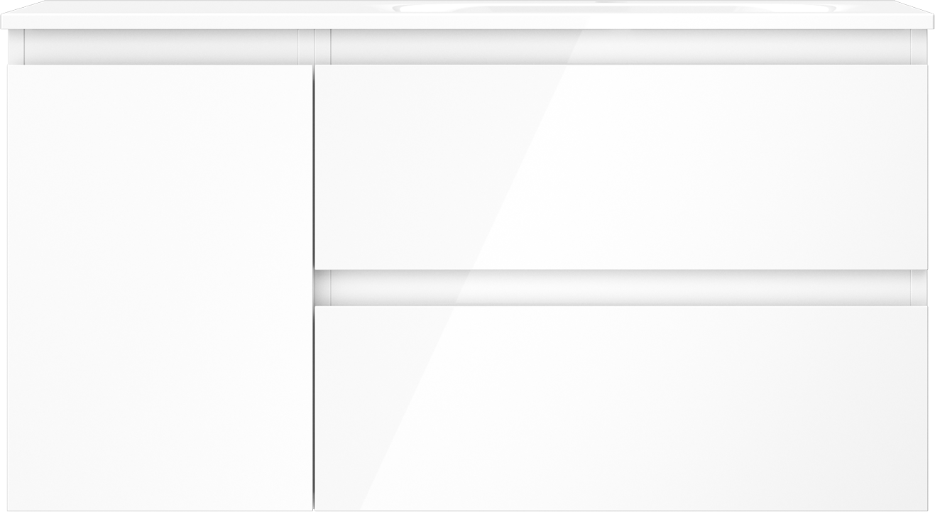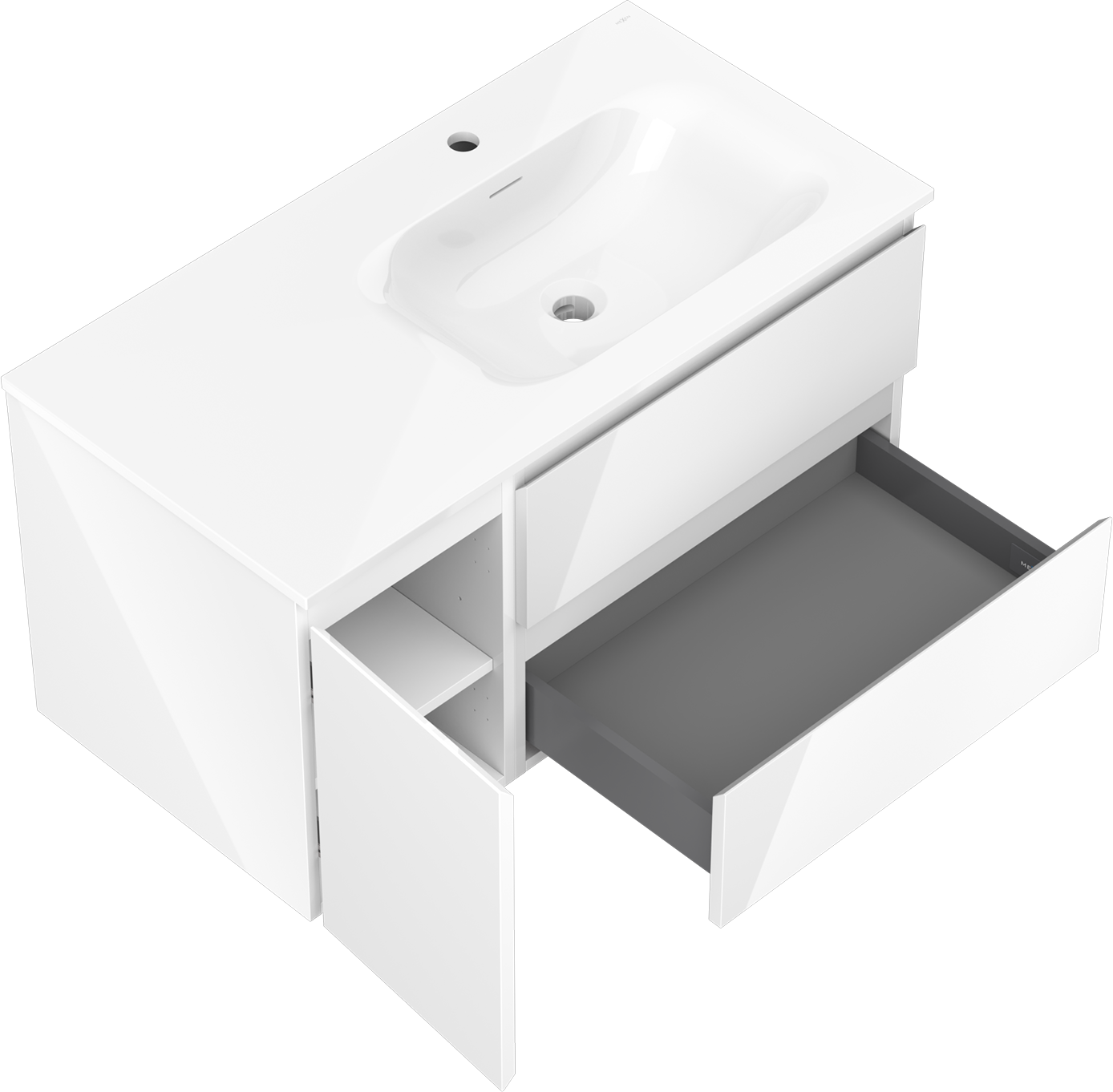 Mexen Orio badmeubelkast 90 cm met wastafel Vela rechts, 2S, 1D, wit glans - 91A13-09047-3-BBFFF00-W23P00