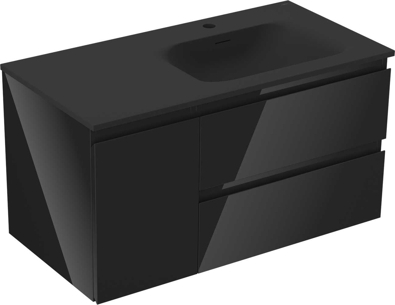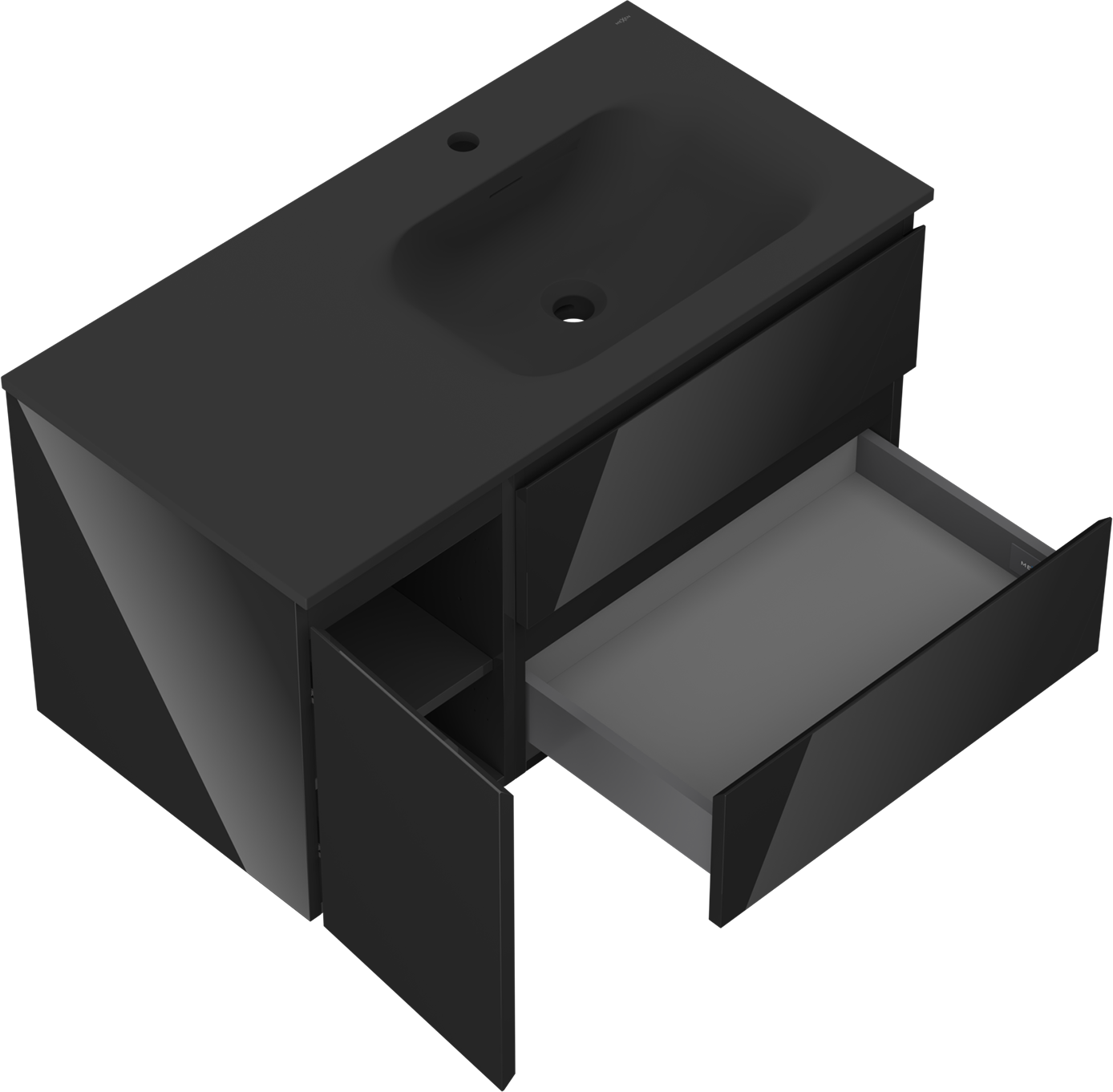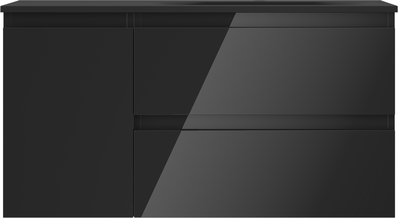 Mexen Orio badkamerkast 90 cm met wastafel Vela rechts, 2S, 1D, zwart glanzend/zwart mat - 91A13-09047-3-BBFFF70-W23P71