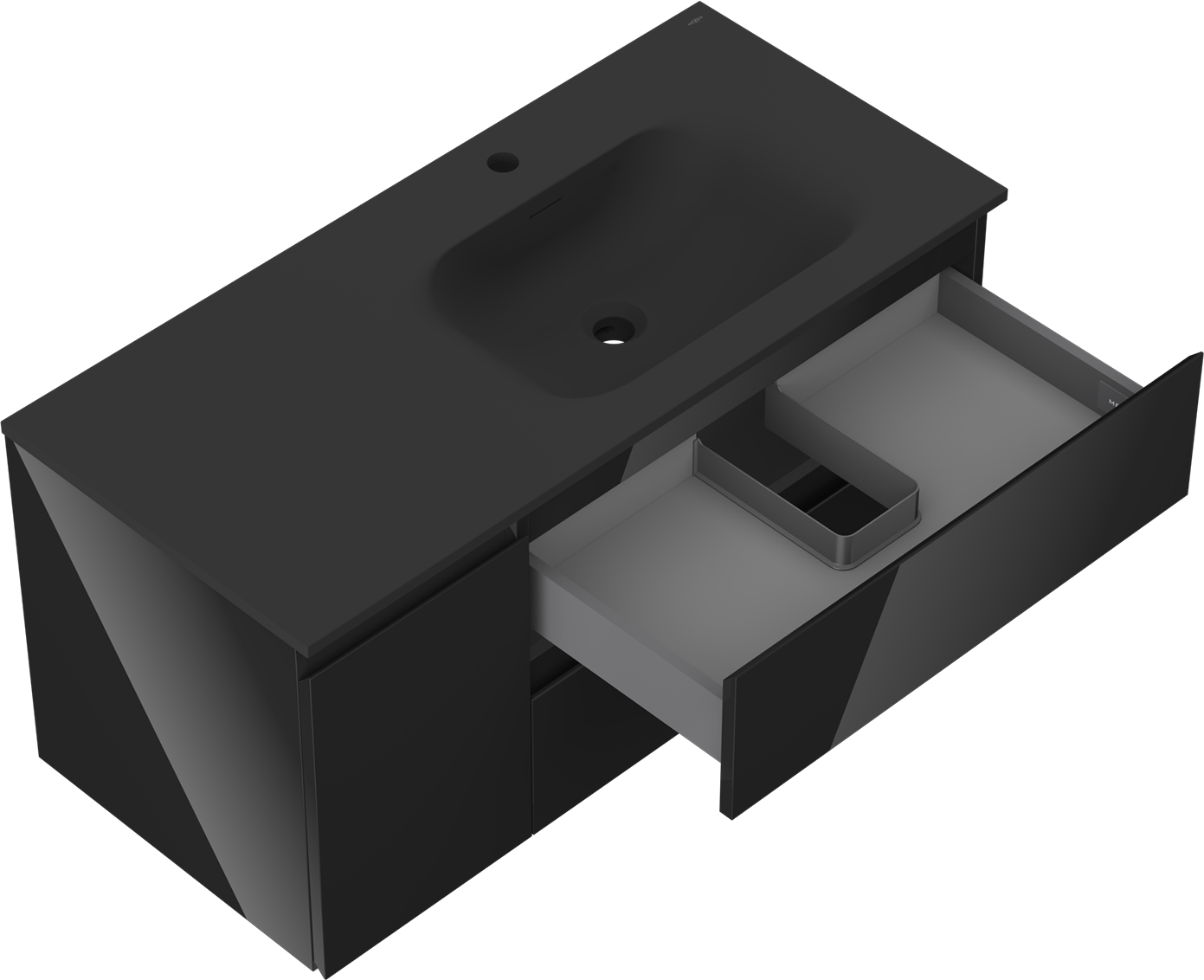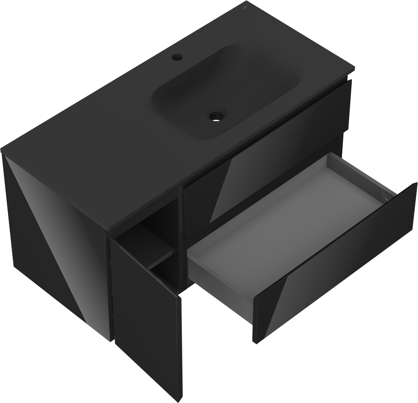 Mexen Orio badkamerkast 100 cm met wastafel Vela rechts, 2S, 1D, zwart glans/zwart mat - 91A13-10047-3-BBFFF70-W23P71