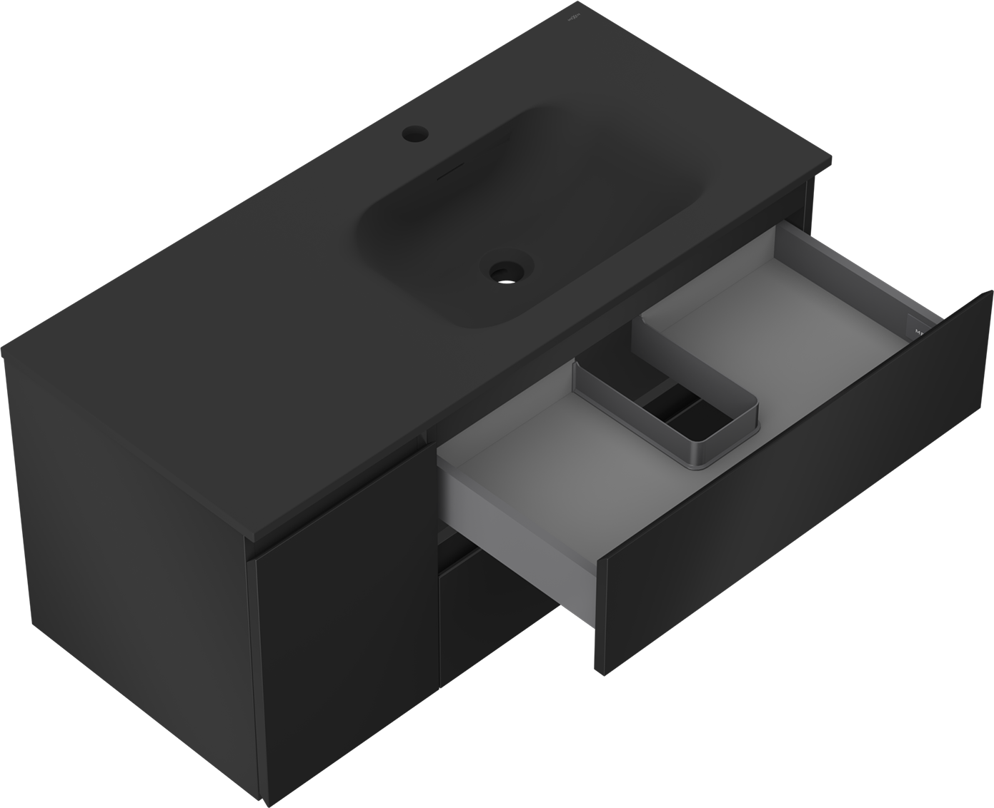 Mexen Orio badkamerkast 100 cm met wasbak Vela rechts, 2L, 1D, zwart mat - 91A13-10047-3-BBFFF71-W23P71