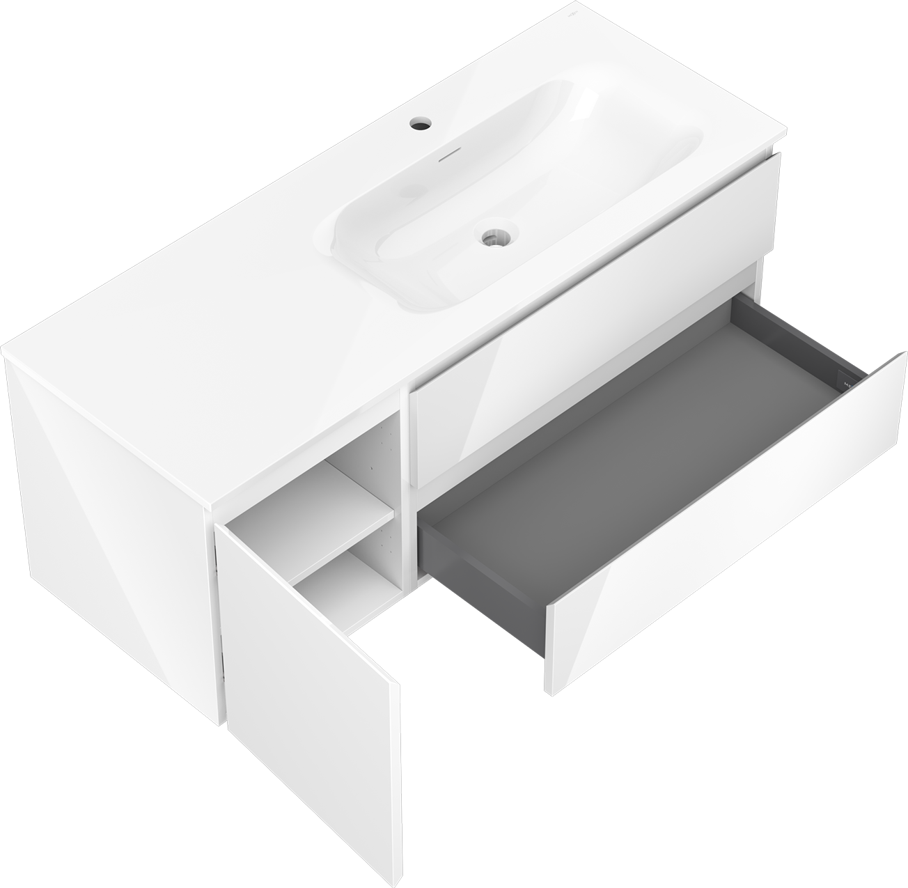 Mexen Orio badkamerkast 120 cm met wastafel Vela rechts, 2S, 1D, wit glans - 91A13-12047-3-BBFFF00-W23P00