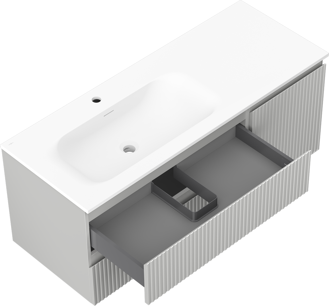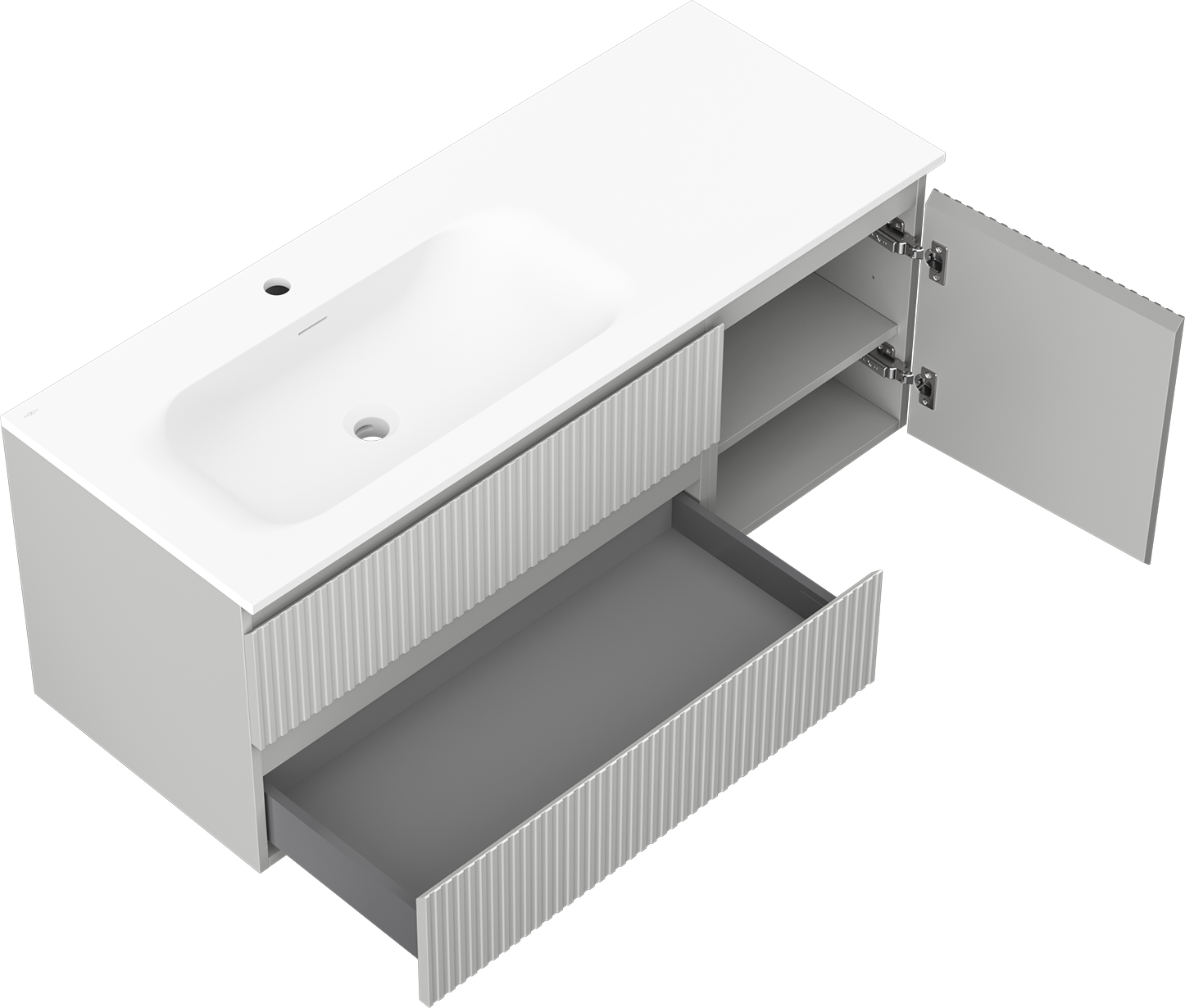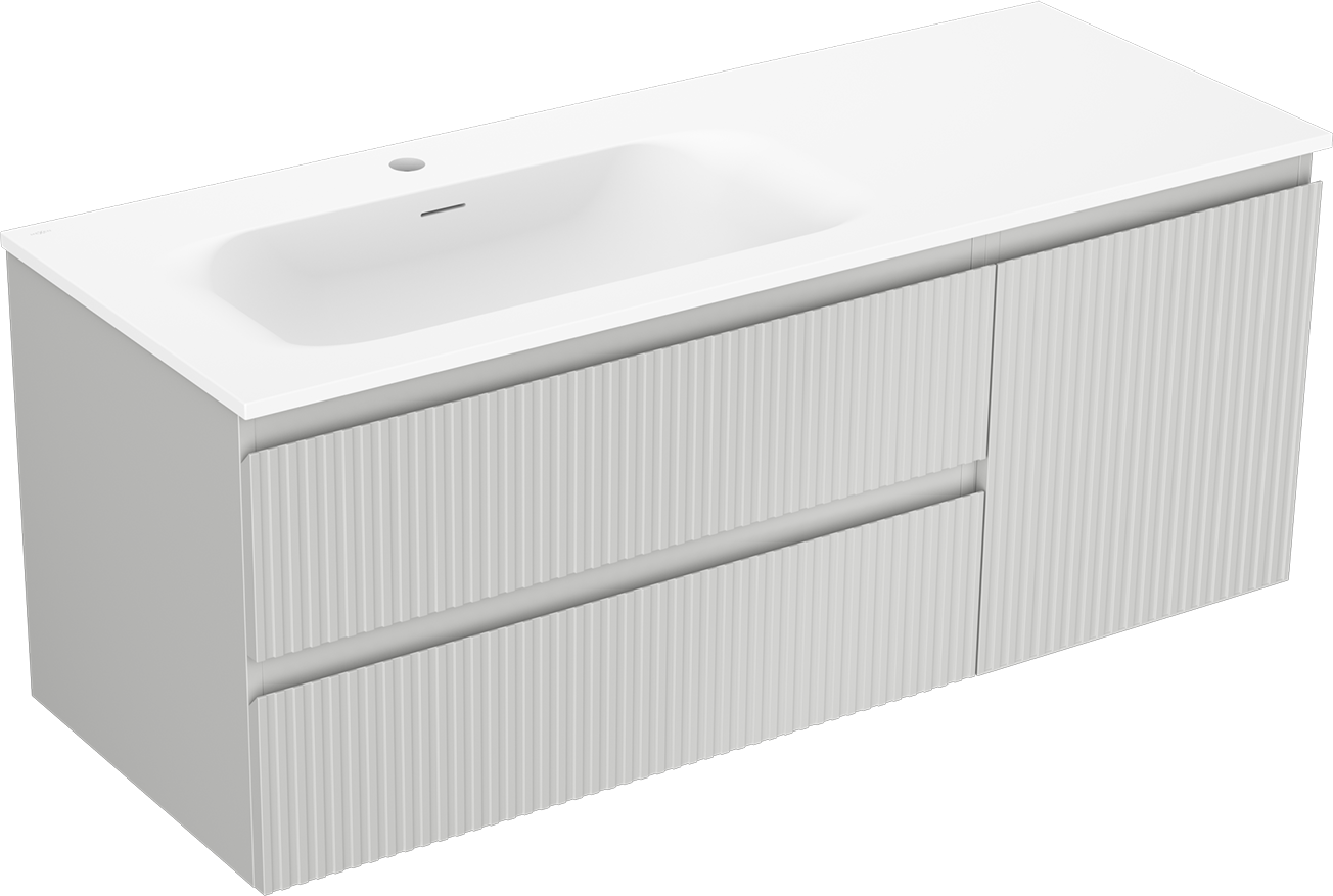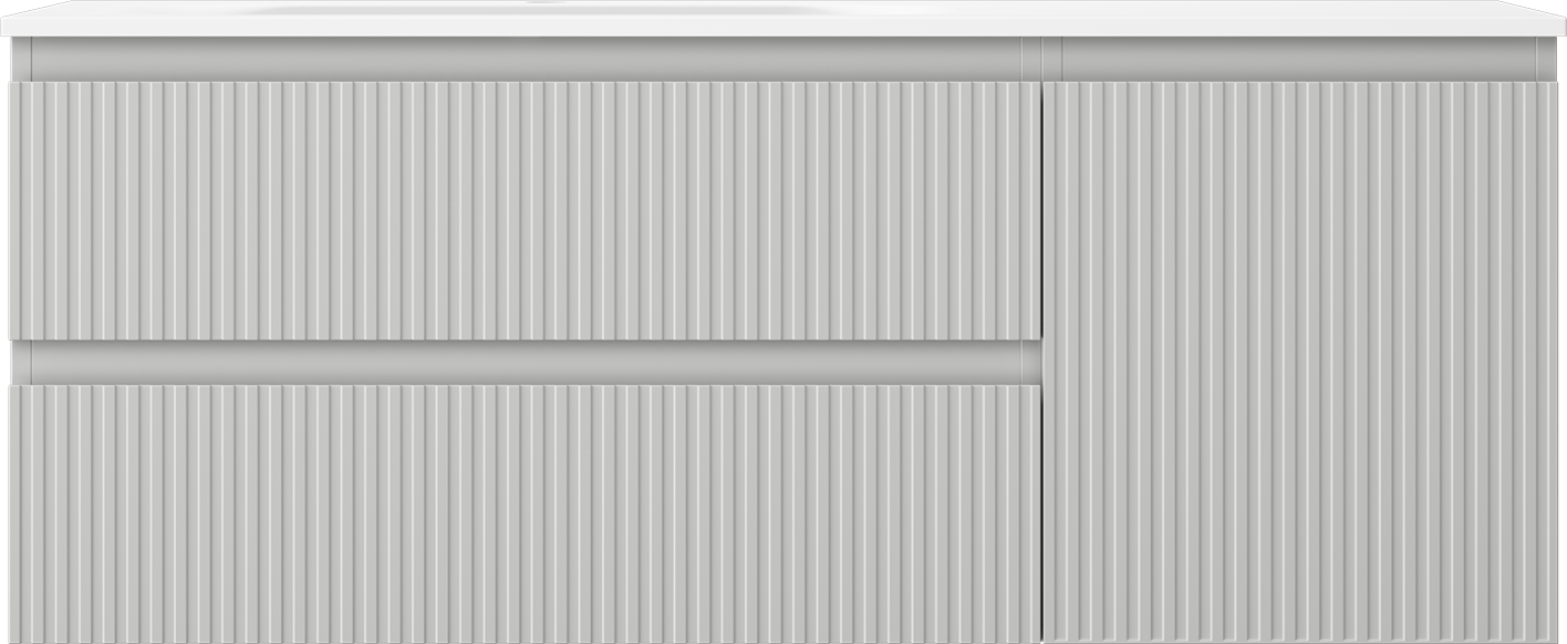 Mexen Rivel badkamerkast 120 cm met wastafel Vela links, 2S, 1D, gegroefd, grijs mat/wit mat - 91A23-12047-3-BBFFF62-W23L01