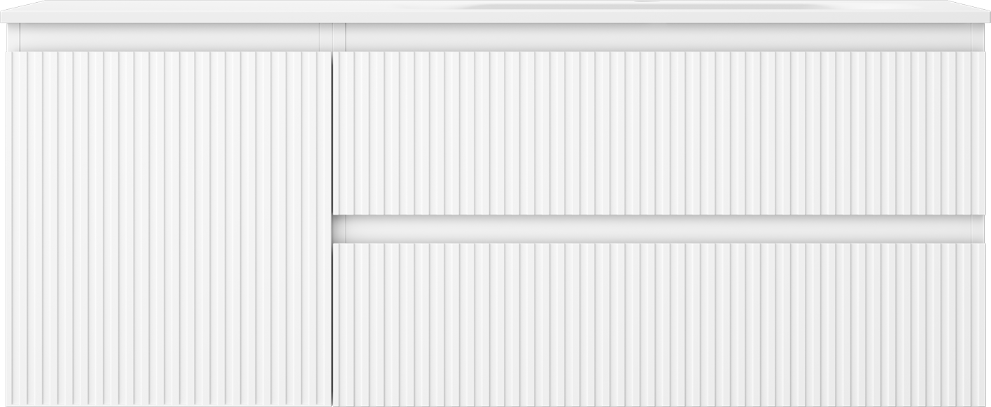 Mexen Rivel badkamerkast 120 cm met wastafel Vela rechts, 2S, 1D, gegroefd, wit mat - 91A23-12047-3-BBFFF01-W23P01