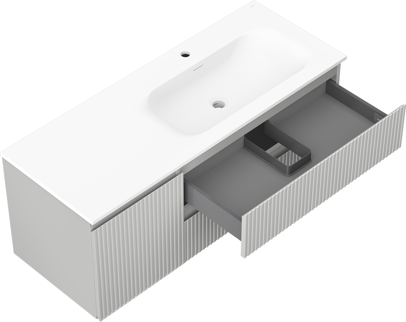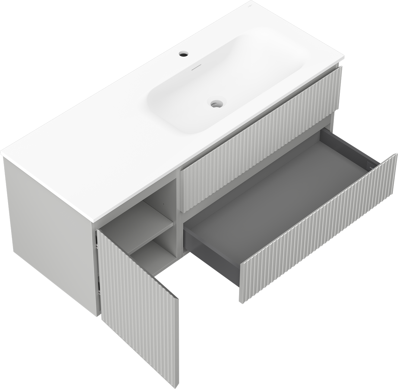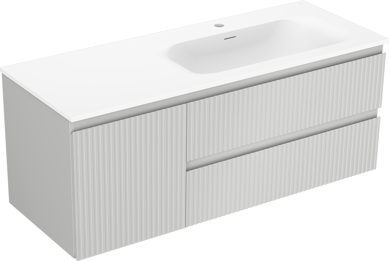 Mexen Rivel badkamerkast 120 cm met wastafel Vela rechts, 2L, 1D, geribbeld, grijs/wit mat - 91A23-12047-3-BBFFF62-W23P01