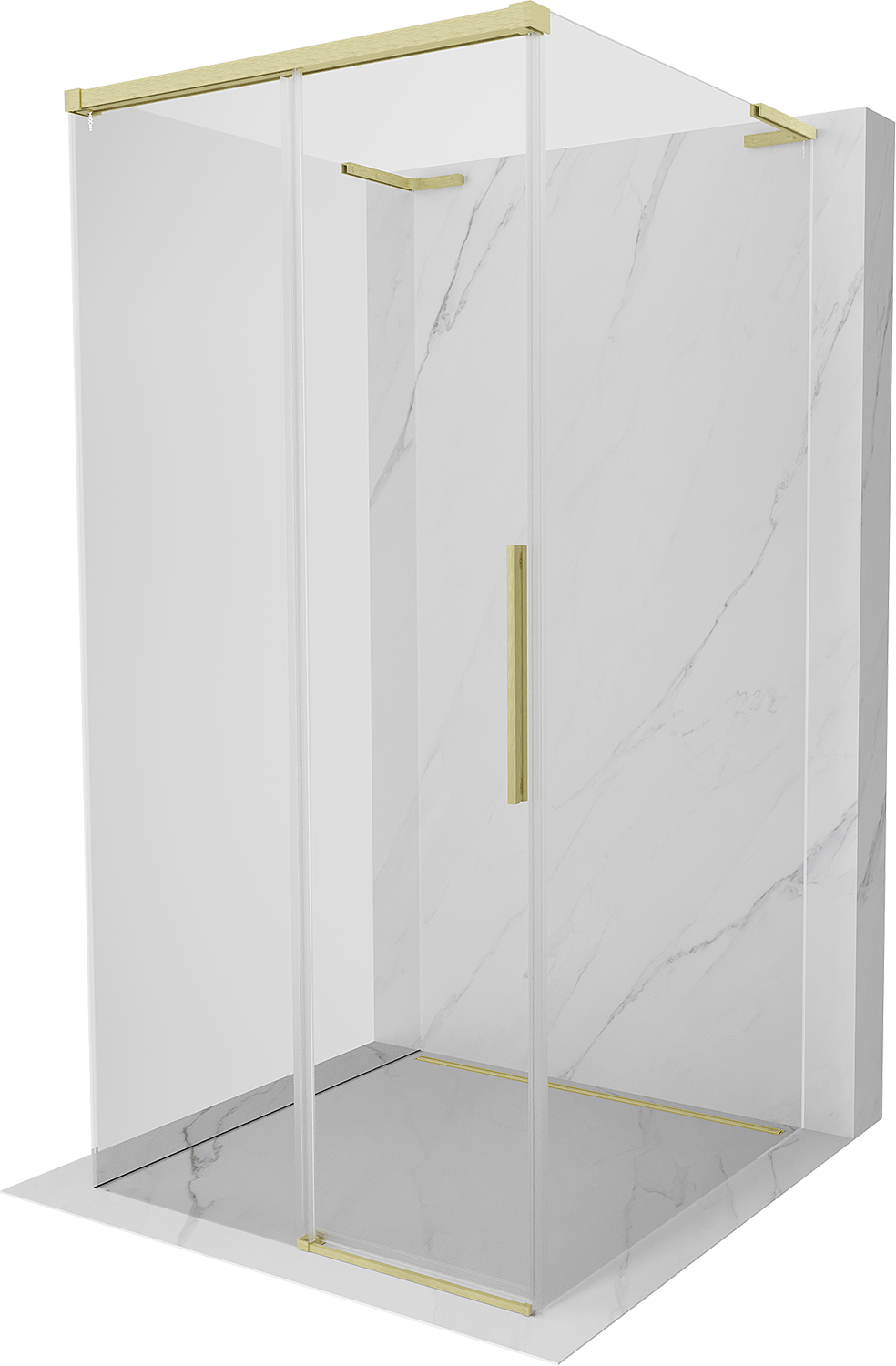 Mexen Rox-3S L 3-zijdige verschuifbare douchecabine 110 x 110 cm, transparant, geborsteld goud - 8C2L-110-110-55-00-3S