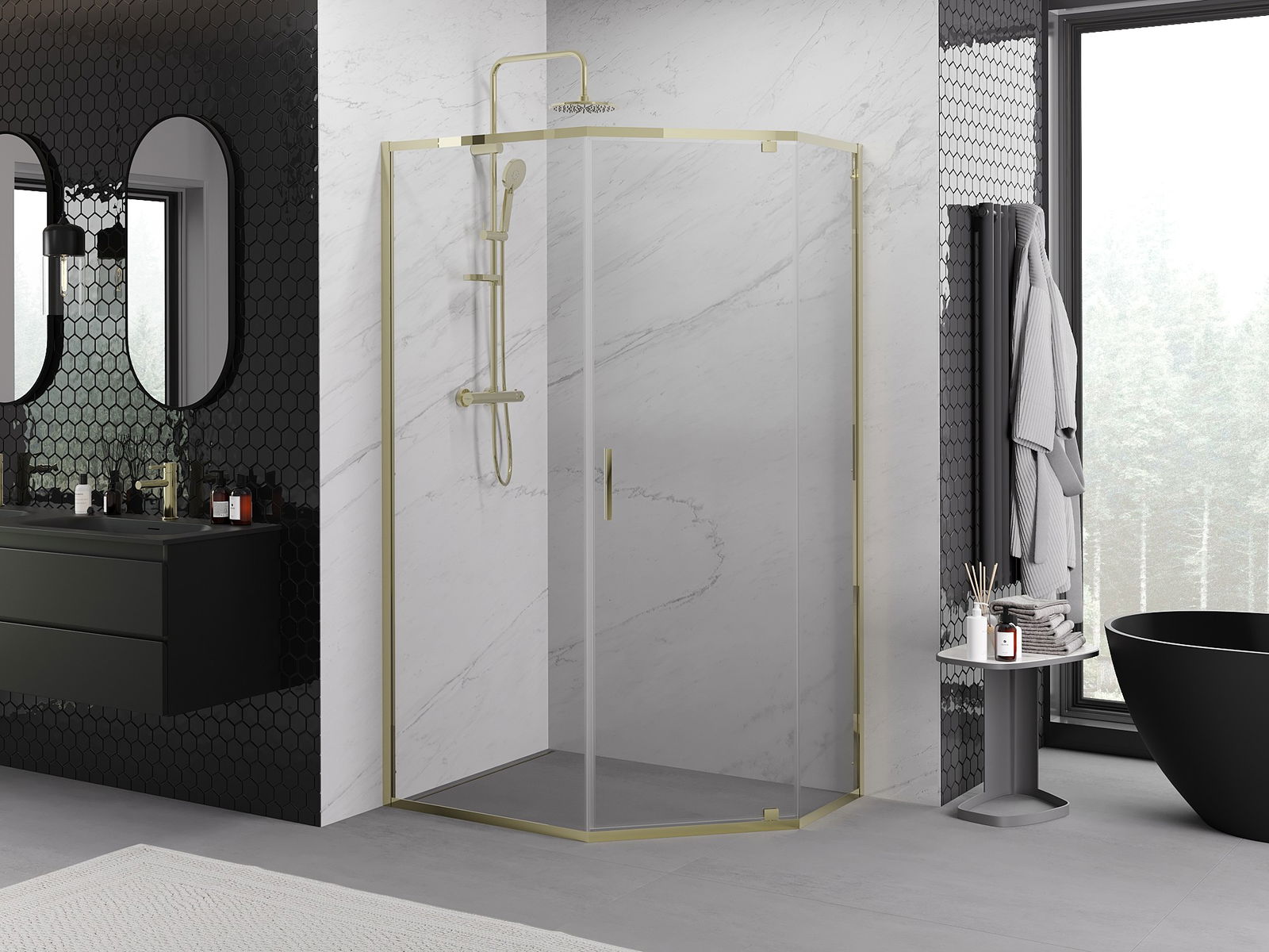Draaideuren bieden maximale vrijheid tijdens het gebruik. Ze hebben stevige scharnieren gemaakt van duurzaam materiaal, die gemakkelijk schoon te houden zijn en zorgen voor gemakkelijke toegang tot het interieur van de cabine.