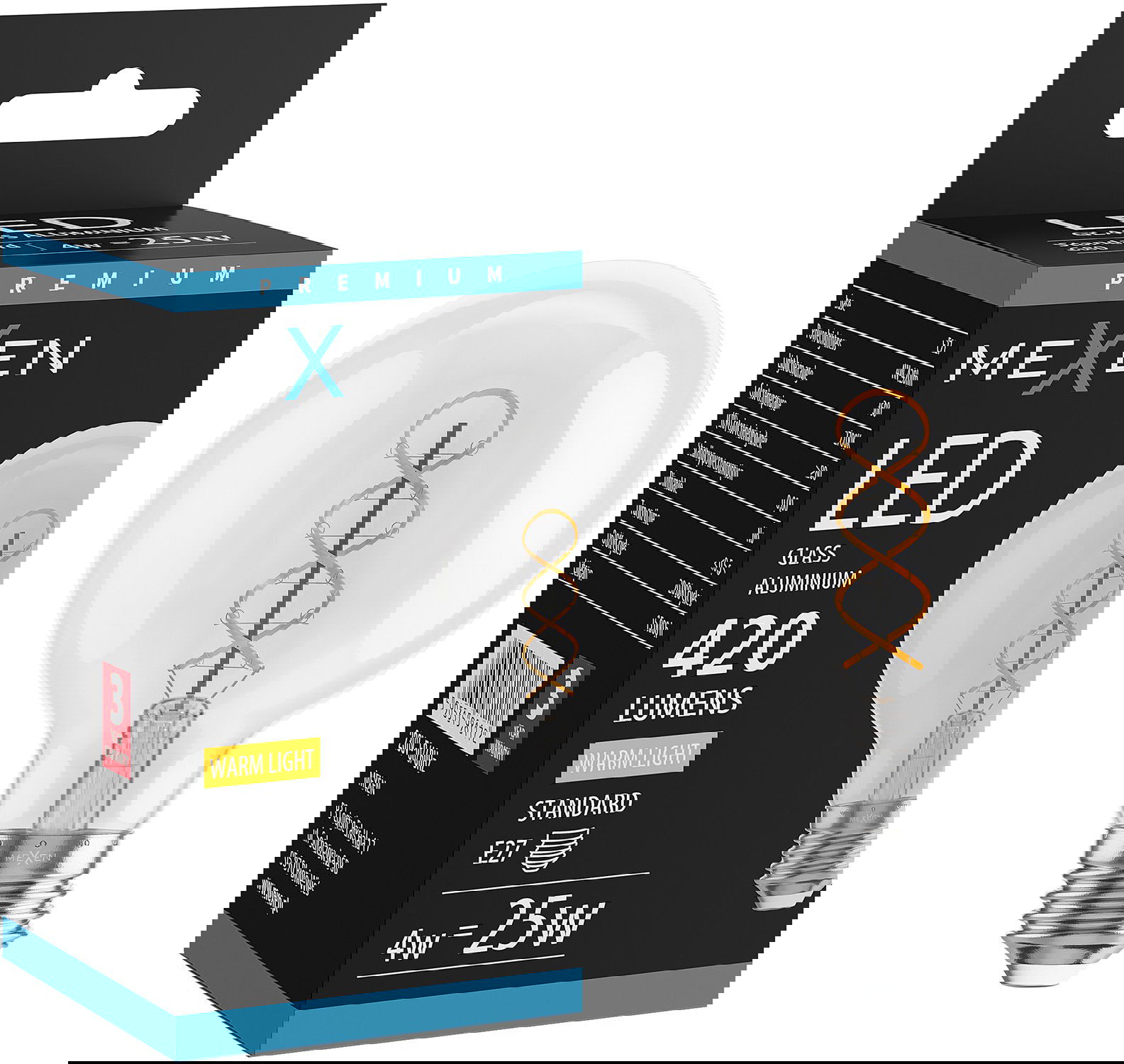 Mexen Vintis LED filament spiraal gloeilamp E27, G80, 4W, Warm - 2700K, 420 lm, helder - L165-E27-0427-00