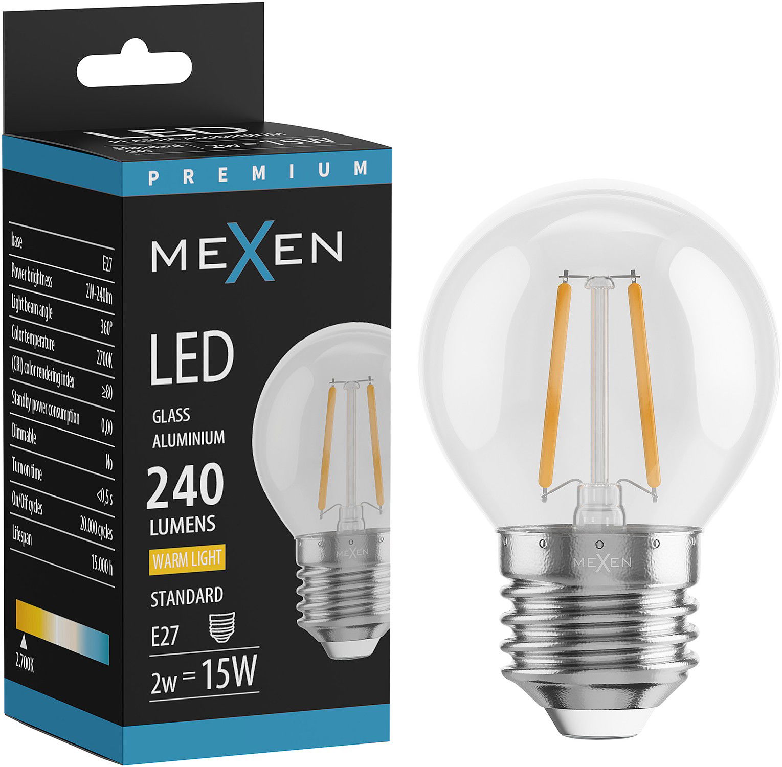 Mexen Vintis LED filamentlamp E27, G45, 2W, Warm - 2700K, 240 lm, helder - L156-E14-0227-00 - L156-E27-0227-00