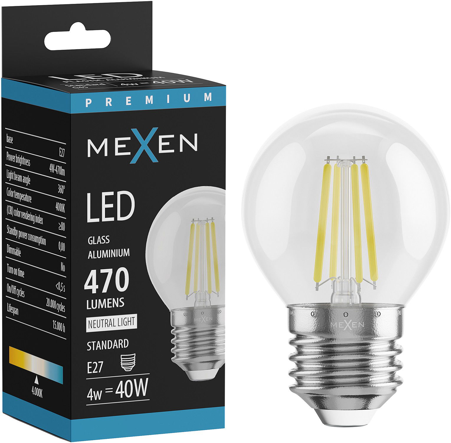 Mexen Vintis LED filamentlamp E27, G45, 4W, Neutraal - 4000K, 470 lm, helder - L156-E27-0427-00 - L156-E27-0440-00