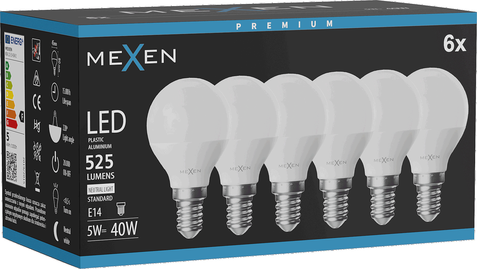 Mexen Nova 6x LED-lamp E14, G45, 5W, Neutraal - 4000K, 525 lm - L101-E14-0540-01x06