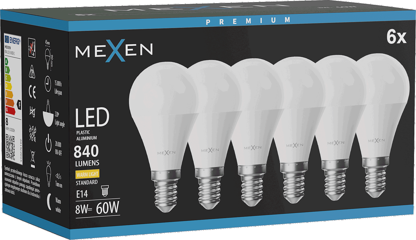 Mexen Nova 6x LED-lamp E14, G45, 8W, Warm - 3000K, 840 lm - L101-E14-0830-01x06