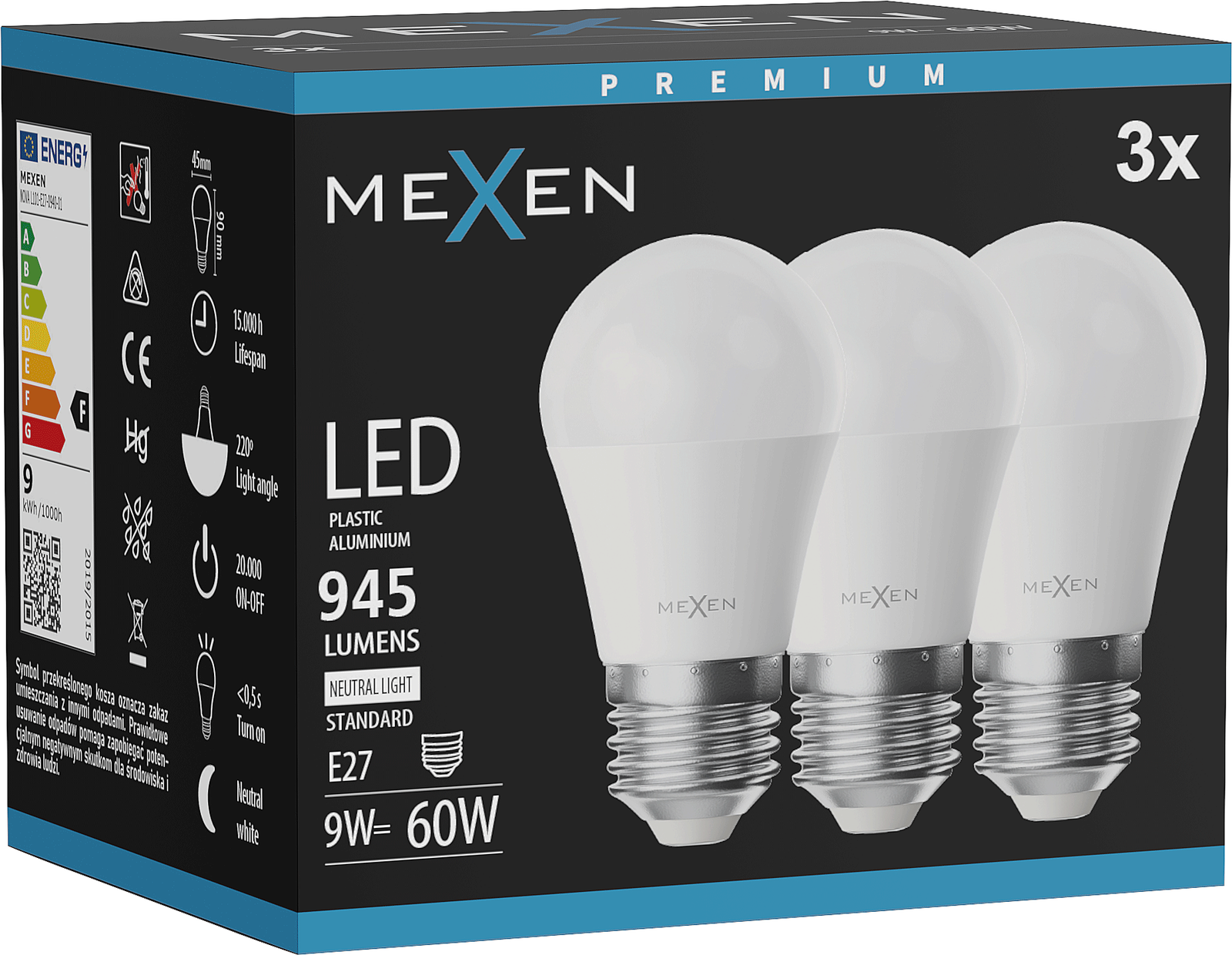 Mexen Nova 3x LED-lamp E27, G45, 9W, Neutraal - 4000K, 945 lm - L101-E27-0940-01x03