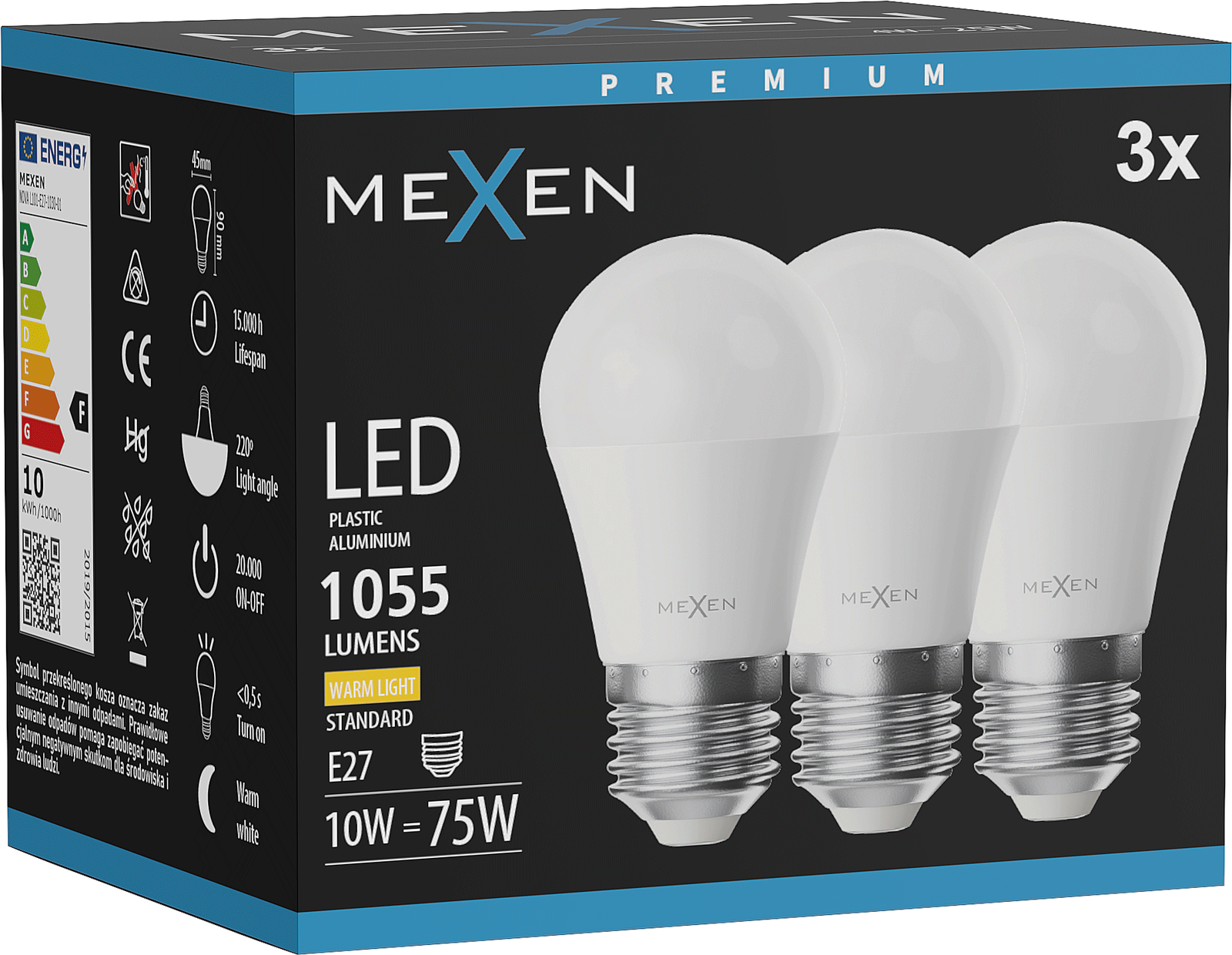 Mexen Nova 3x LED Lamp E27, G45, 10W, Warm - 3000K, 1055 lm - L101-E27-1030-01x03