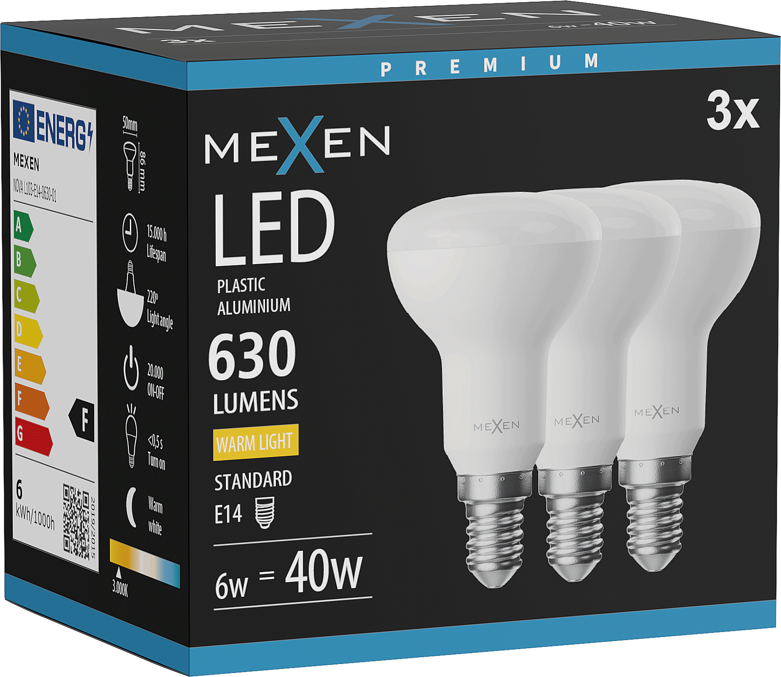 Mexen Nova 3x LED-lamp E14, R50, 6W, Warm - 3000K, 630 lm - L103-E14-0630-01x03