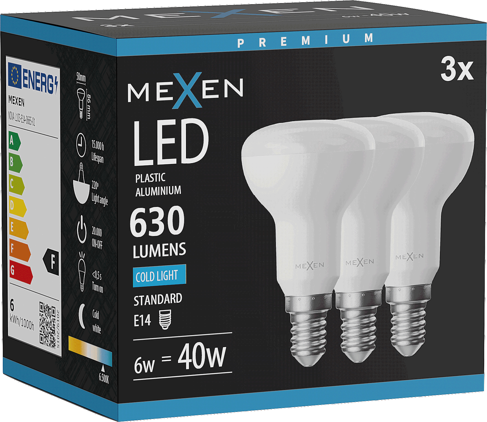Mexen Nova 3x LED-lamp E14, R50, 6W, Koud - 6500K, 630 lm - L103-E14-0665-01x03