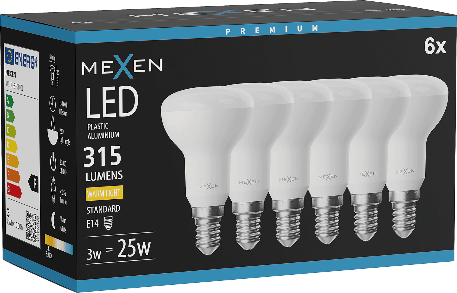 Mexen Nova 6x LED Lamp E14, R50, 3W, Warm - 3000K, 315 lm - L103-E14-0330-01x06