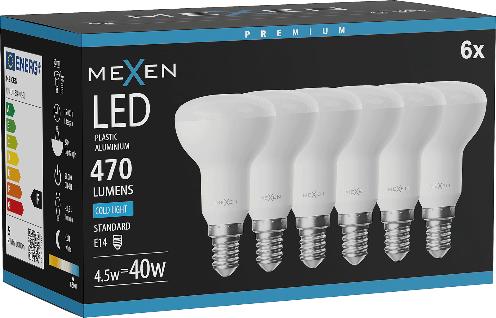 Mexen Nova 6x LED-lamp E14, R50, 4,5W, Koud - 6500K, 470 lm - L103-E14-0565-01x06