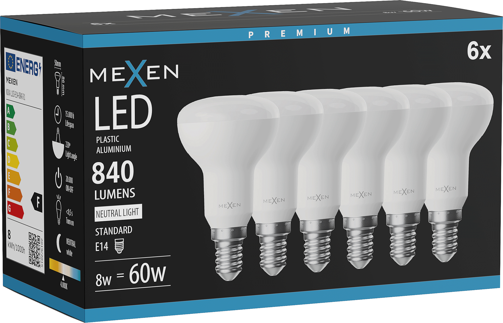 Mexen Nova 6x LED-lamp E14, R50, 8W, Neutraal - 4000K, 840 lm - L103-E14-0840-01x06