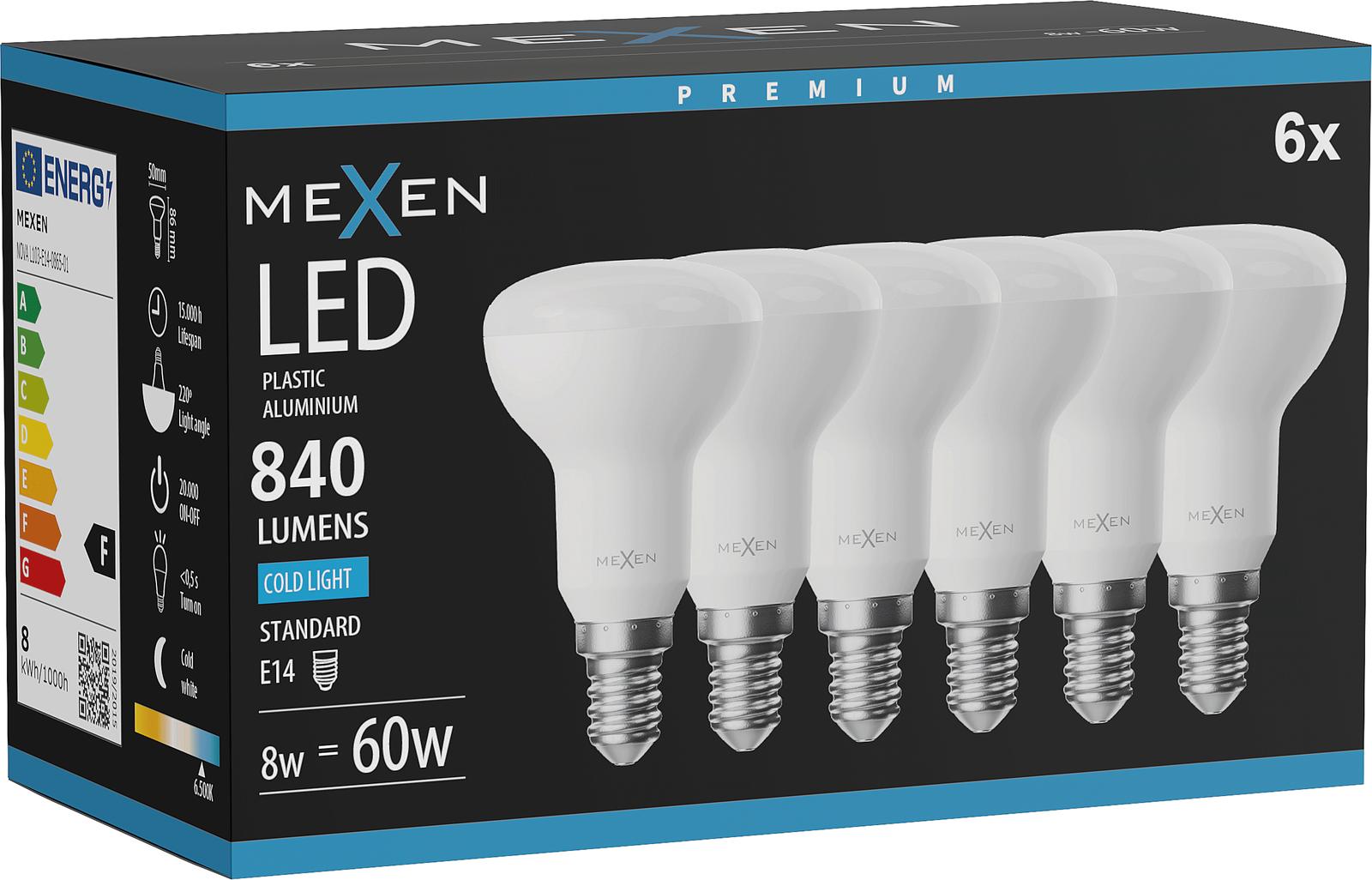 Mexen Nova 6x LED-lamp E14, R50, 8W, Koud - 6500K, 840 lm - L103-E14-0865-01x06
