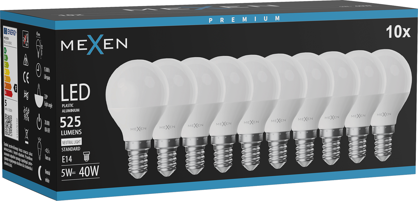 Mexen Nova 10x LED-lamp E14, G45, 5W, Neutraal - 4000K, 525 lm - L101-E14-0540-01x10