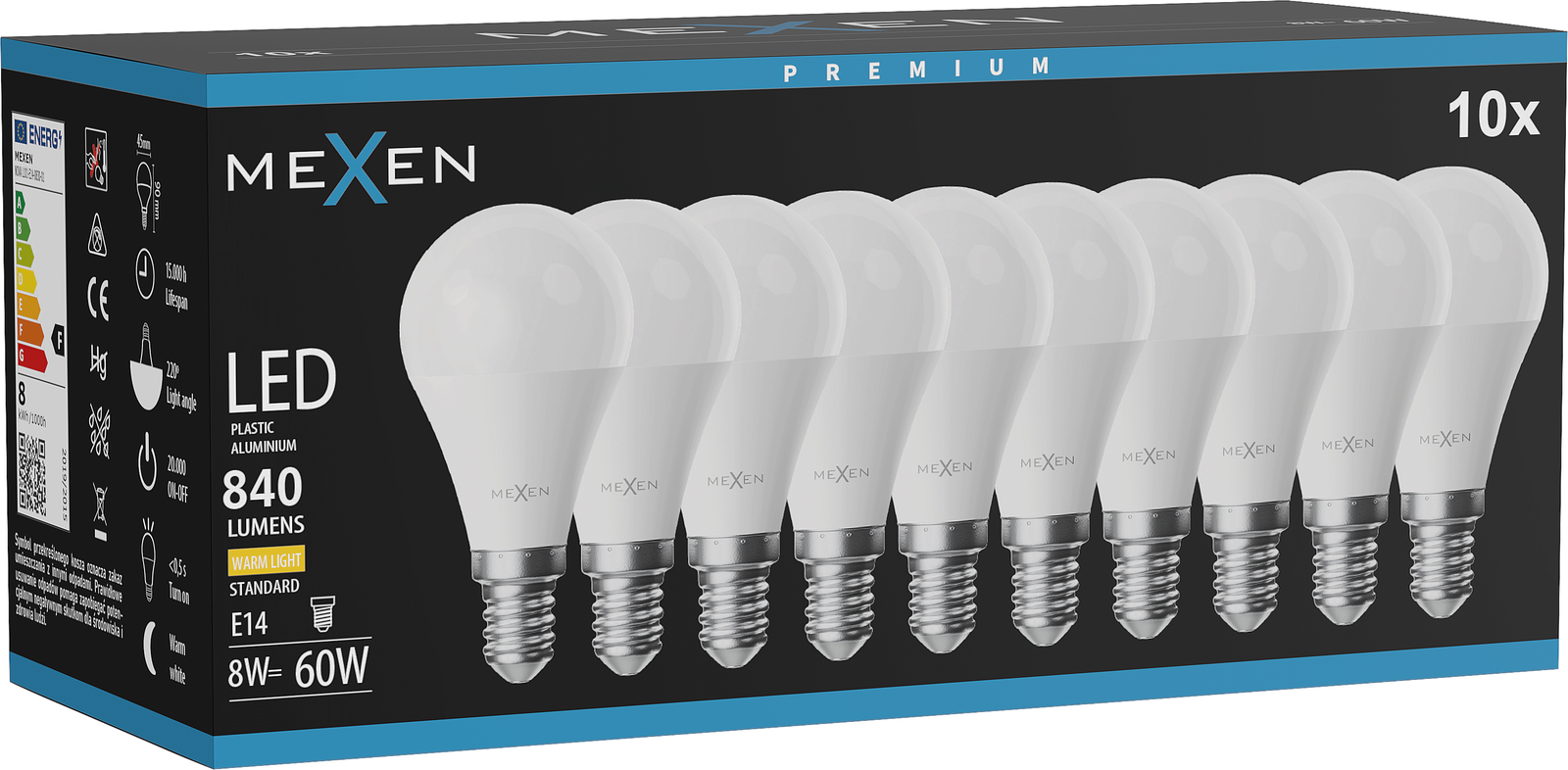 Mexen Nova 10x LED-lamp E14, G45, 8W, Warm - 3000K, 840 lm - L101-E14-0830-01x10