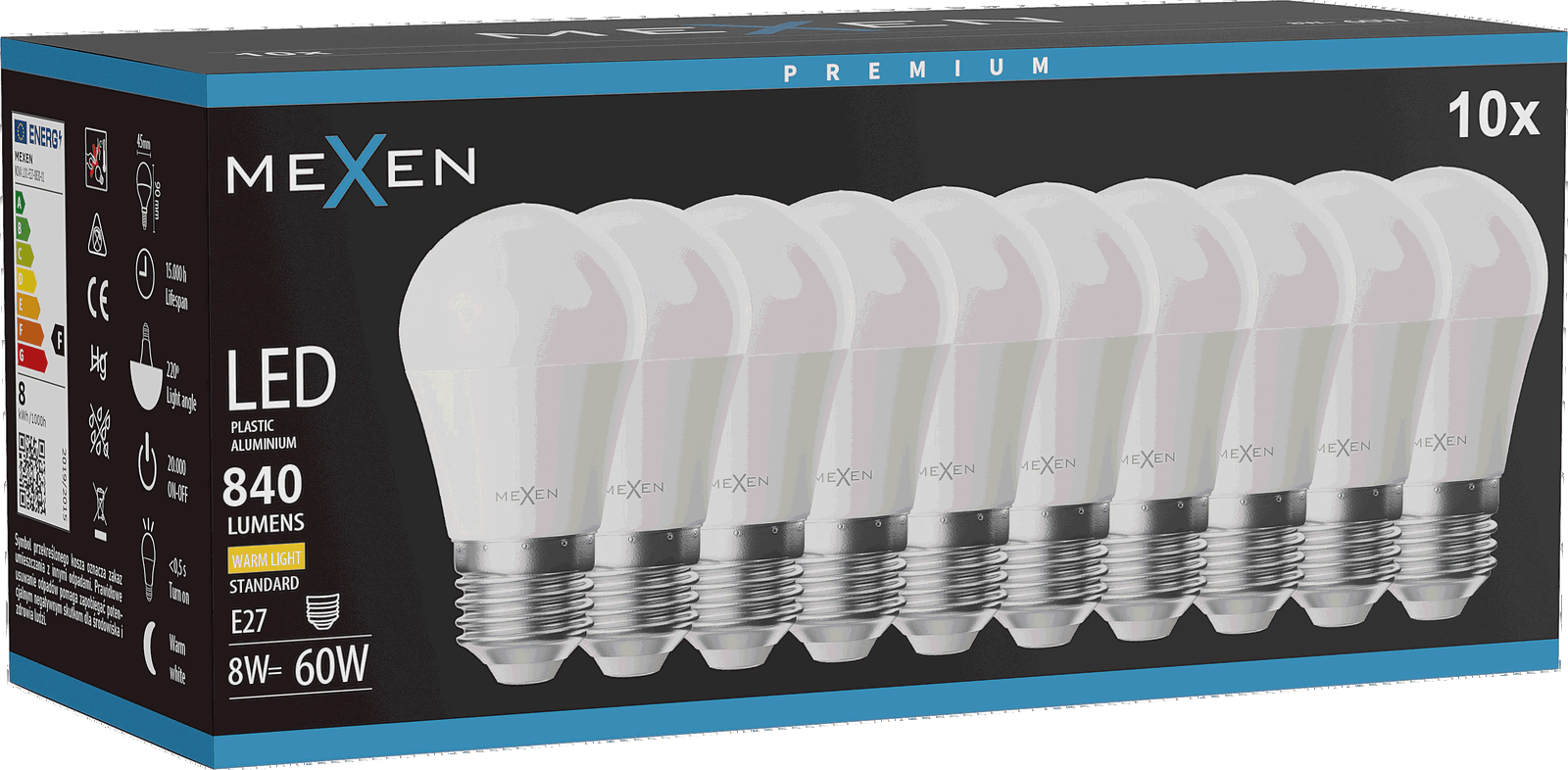 Mexen Nova 10x LED-lamp E27, G45, 8W, Warm - 3000K, 840 lm - L101-E27-0830-01x10