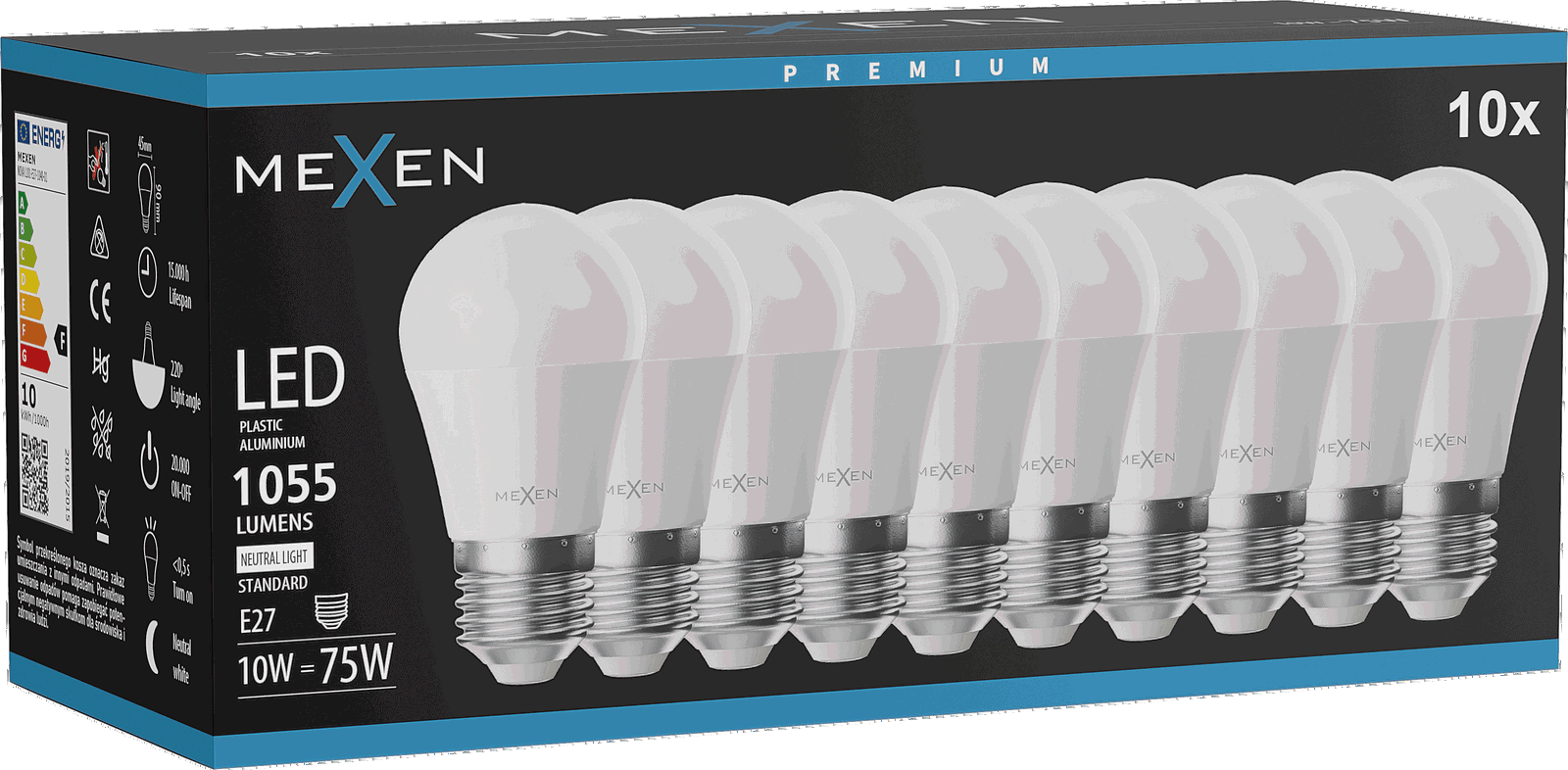 Mexen Nova 10x LED Lamp E27, G45, 10W, Neutraal - 4000K, 1055 lm - L101-E27-1040-01x10