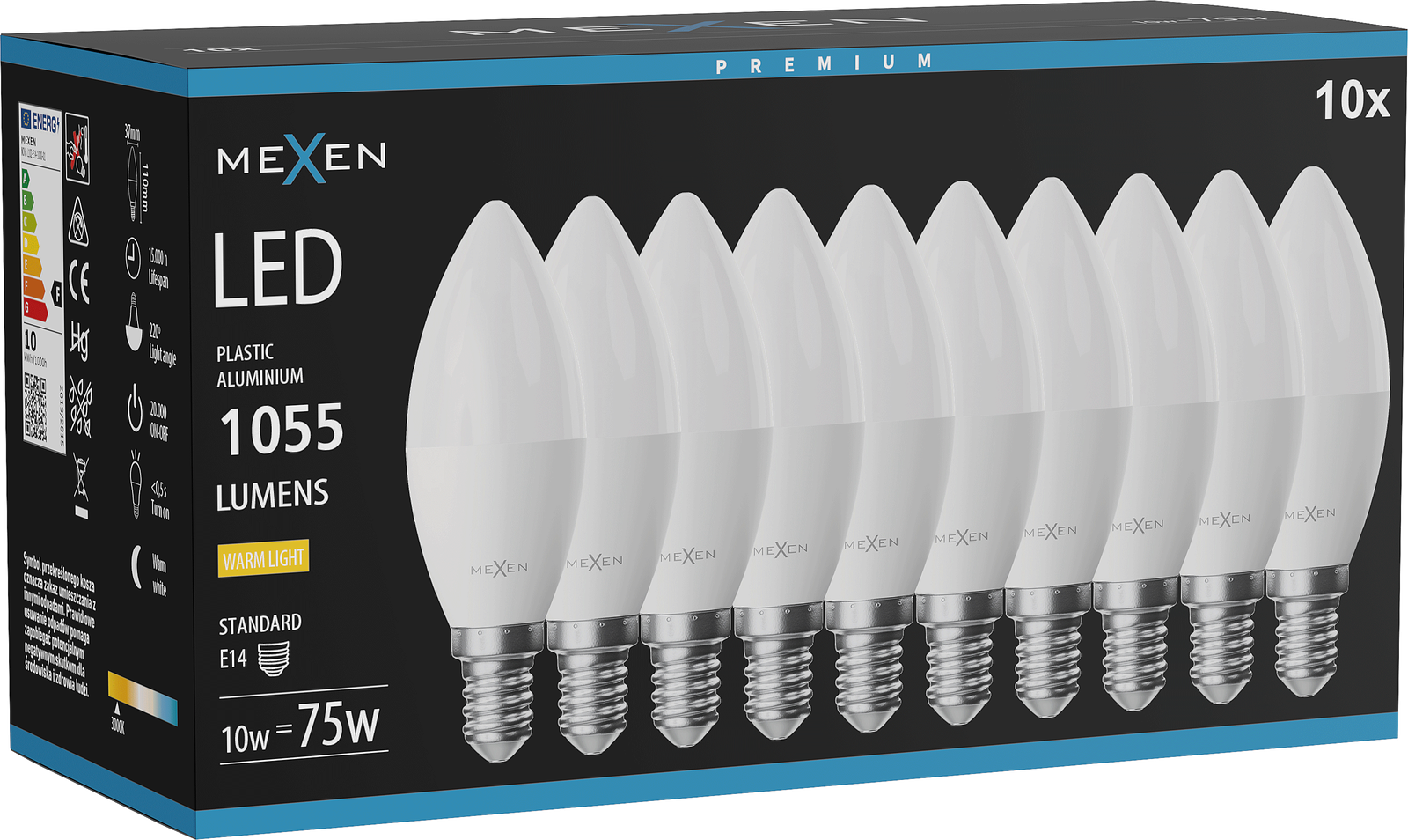 Mexen Nova 10x LED-lamp E14, C37, 10W, Warm - 3000K, 1055 lm - L102-E14-1030-01x10