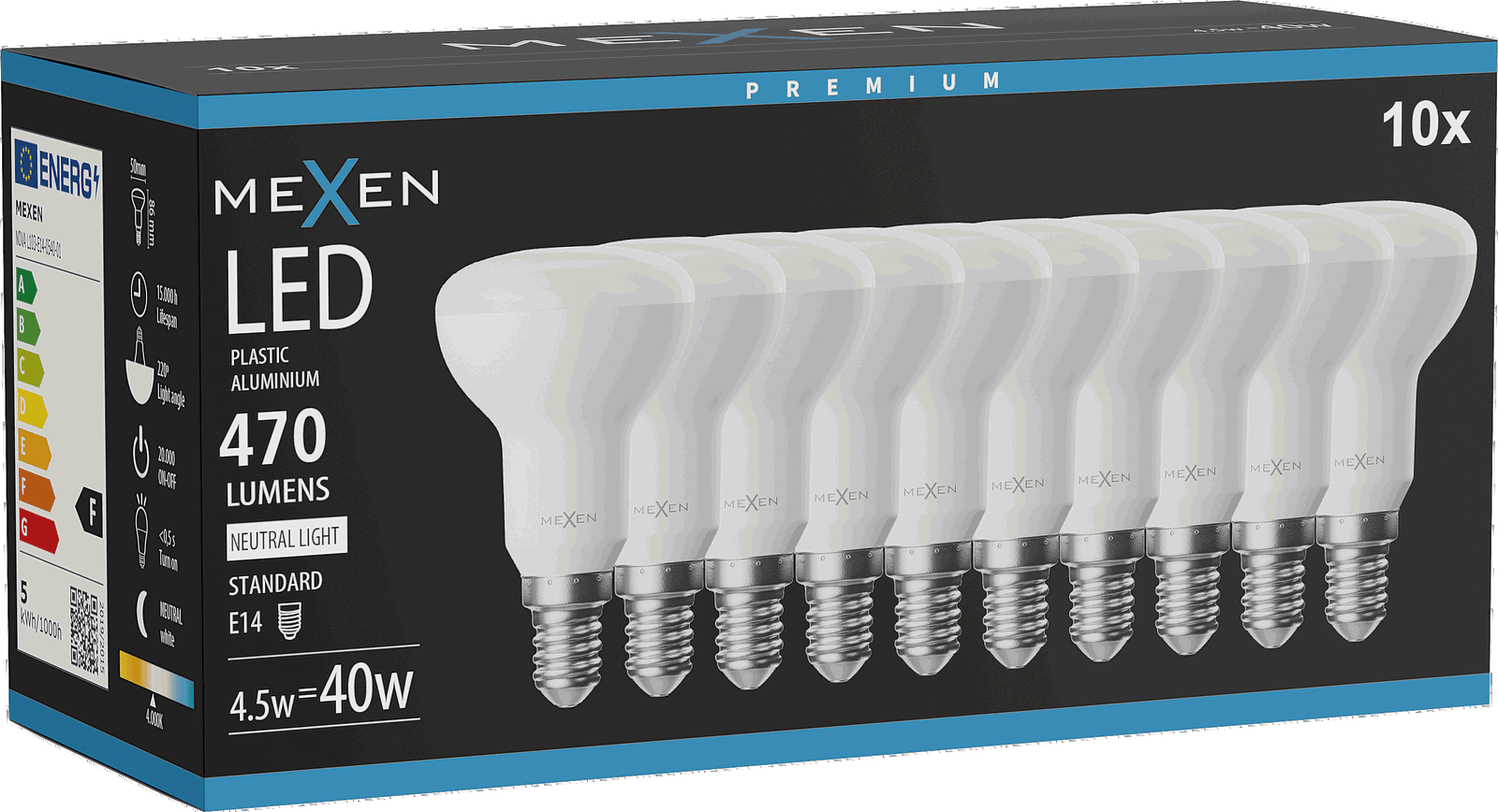 Mexen Nova 10x LED-lamp E14, R50, 4,5W, Neutraal - 4000K, 470 lm - L103-E14-0540-01x10
