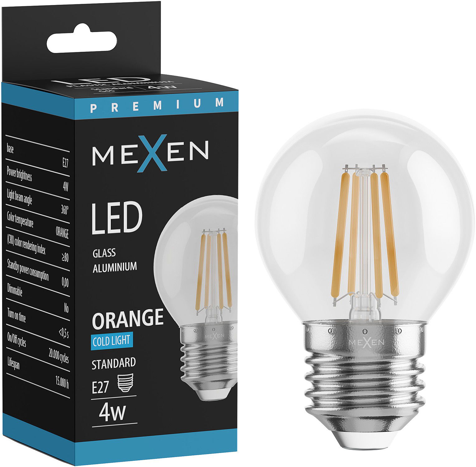 Mexen Vintis LED filamentlamp E27, G45, 4W, 55 lm, oranje - L156-E27-04XX-48