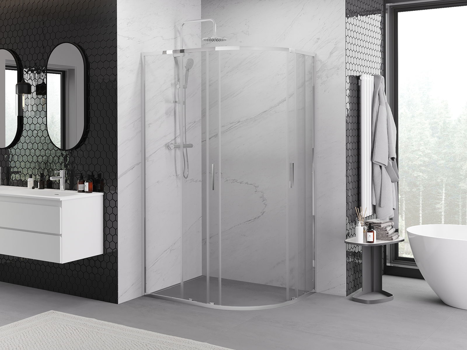 Mexen Exo asymmetrische halfronde schuifdouchecabine 120 x 80 cm, transparant, chroom - 8132-120-080-01-00