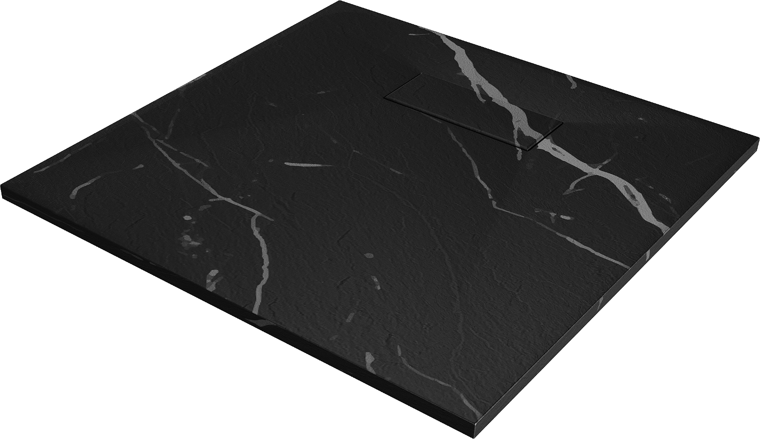 De vierkante Hugo douchebak 80 x 80 cm is de ideale oplossing voor de moderne badkamer. Gemaakt van duurzaam SMC-materiaal en gekenmerkt door een steenstructuur, geeft het een elegante uitstraling. Met zijn ultradunne hoogte van 2,6 cm is het gemakkelijk te monteren in de vloer of op de vloer. Dankzij de mogelijkheid om bij te snijden en uitstekende slagvastheid biedt de douchebak stabiliteit en gebruikscomfort. Inclusief sifon en een afvoergat met een diameter van 90 mm voor eenvoudig waterafvoer. Zwarte steen is een klassieke stijl die in elk interieur past.
