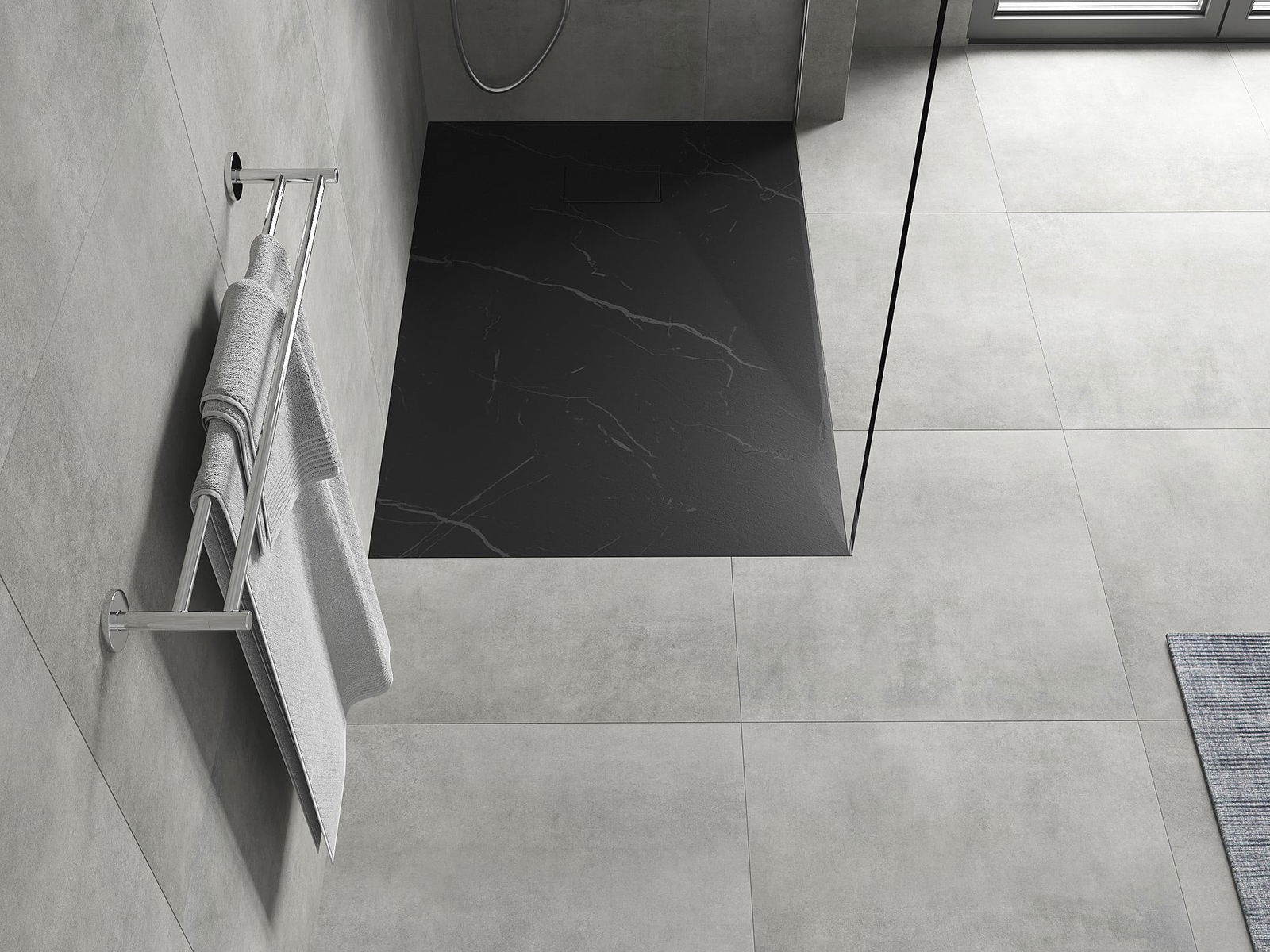 Elke douchebak heeft een uniek patroon van natuursteen