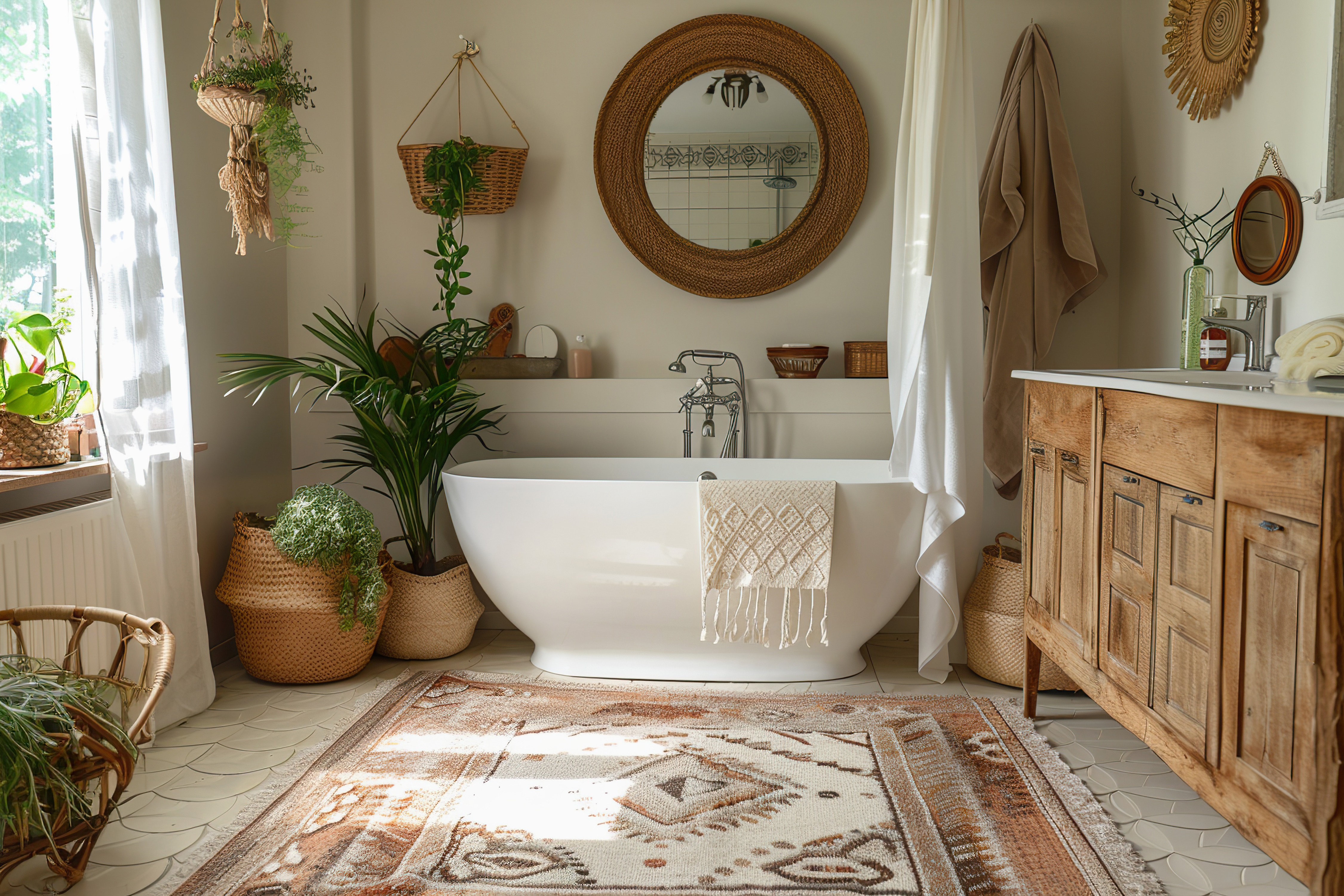 Welke boho accessoires kies je voor de badkamer om een gezellige sfeer te creëren?