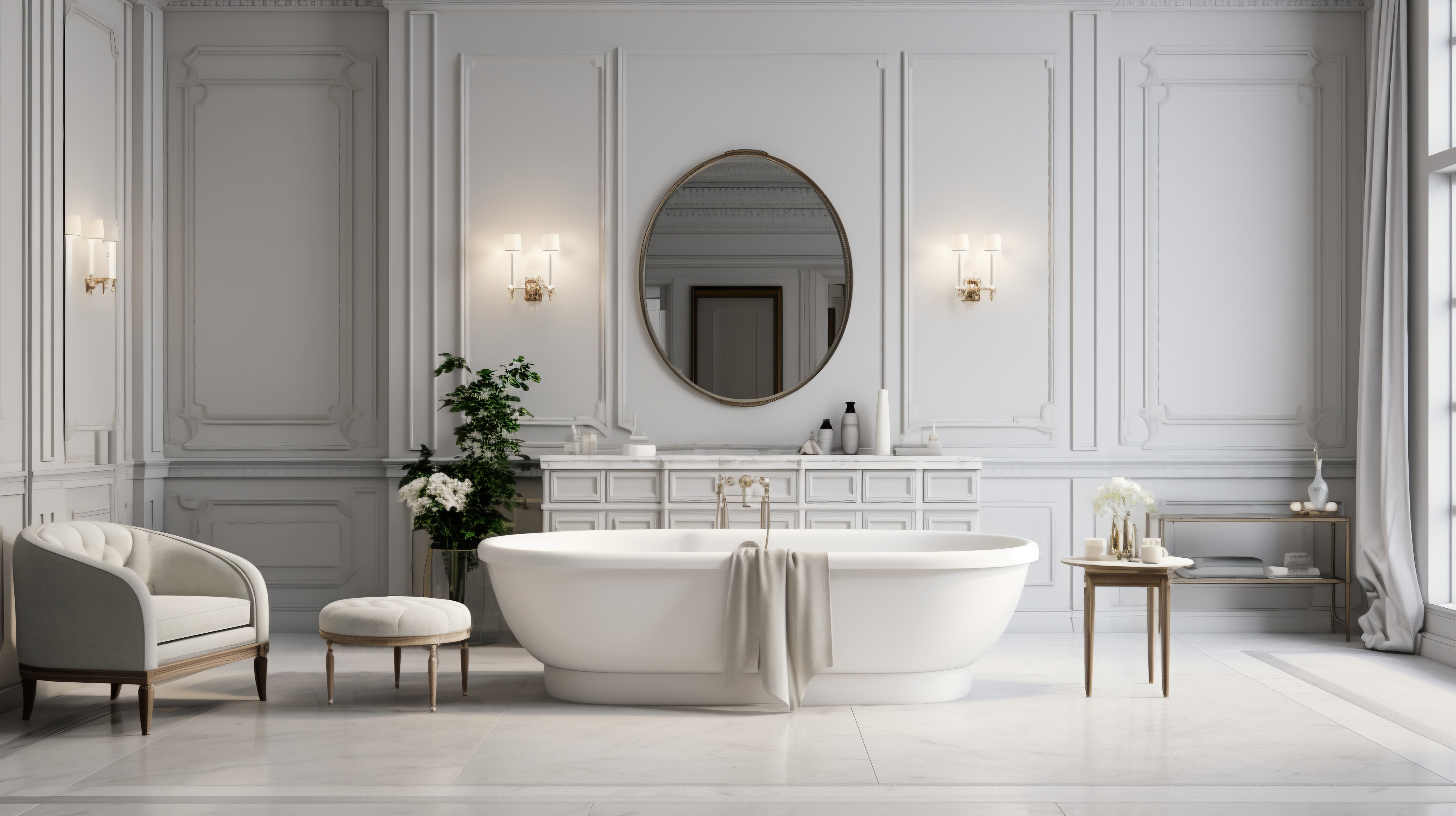 Mat of hoogglans? Evenwicht van texturen in moderne glamour badkamerinrichting