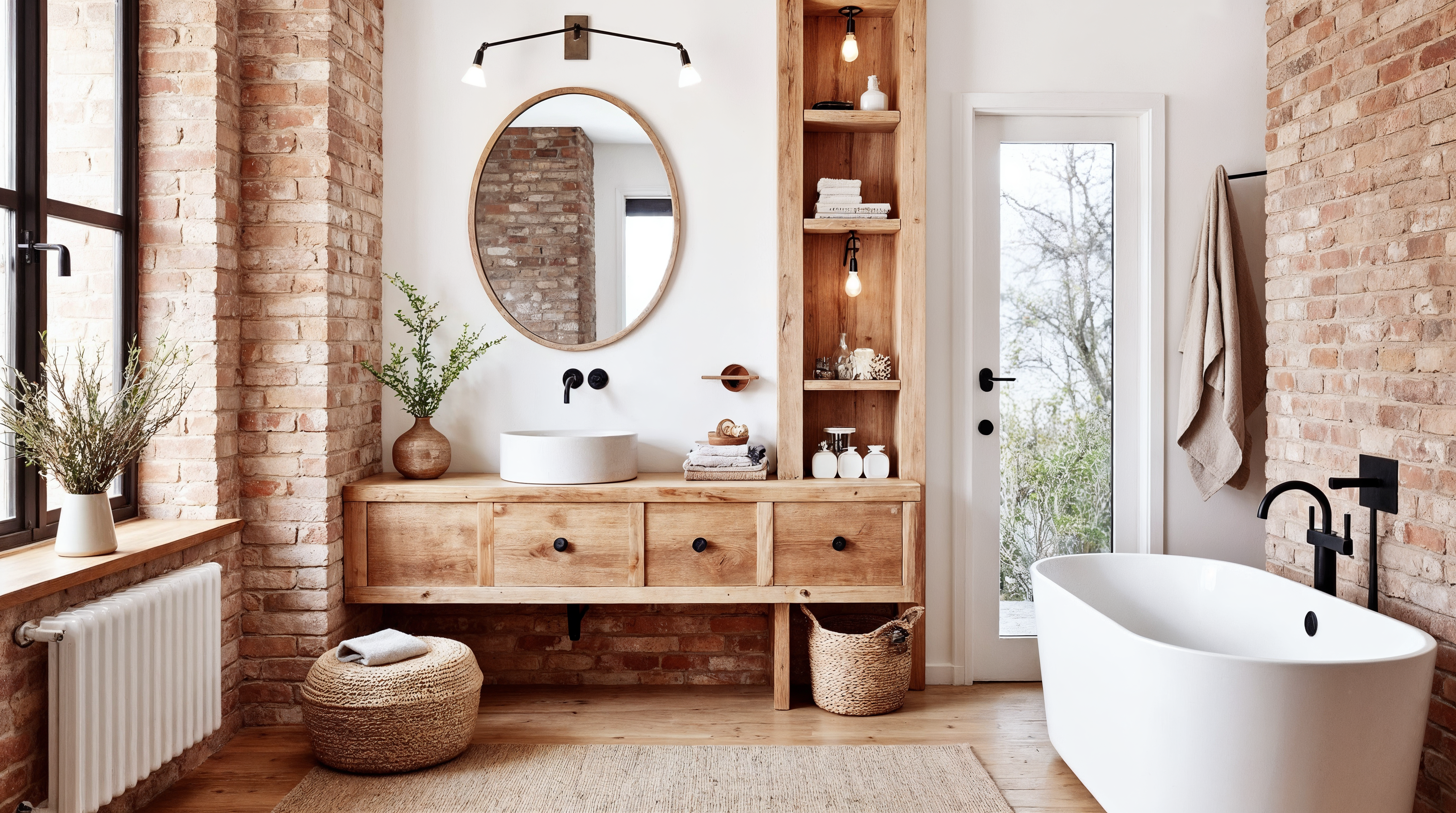 - Welke accessoires en meubels creëren een gezellige sfeer in een rustieke badkamer?