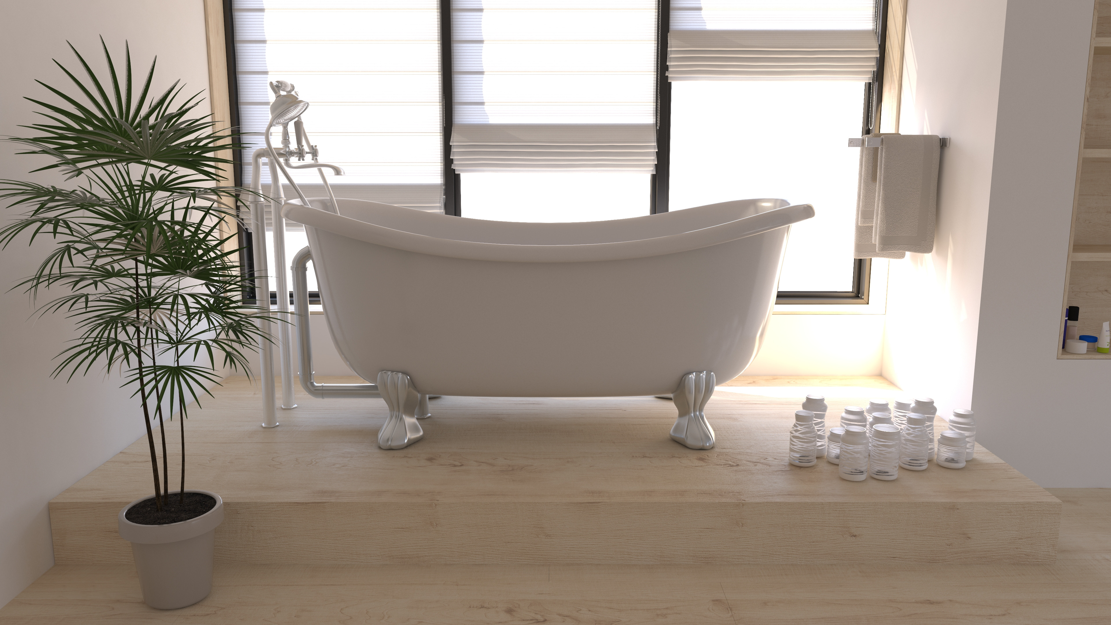 Houten vloer in een witte badkamer