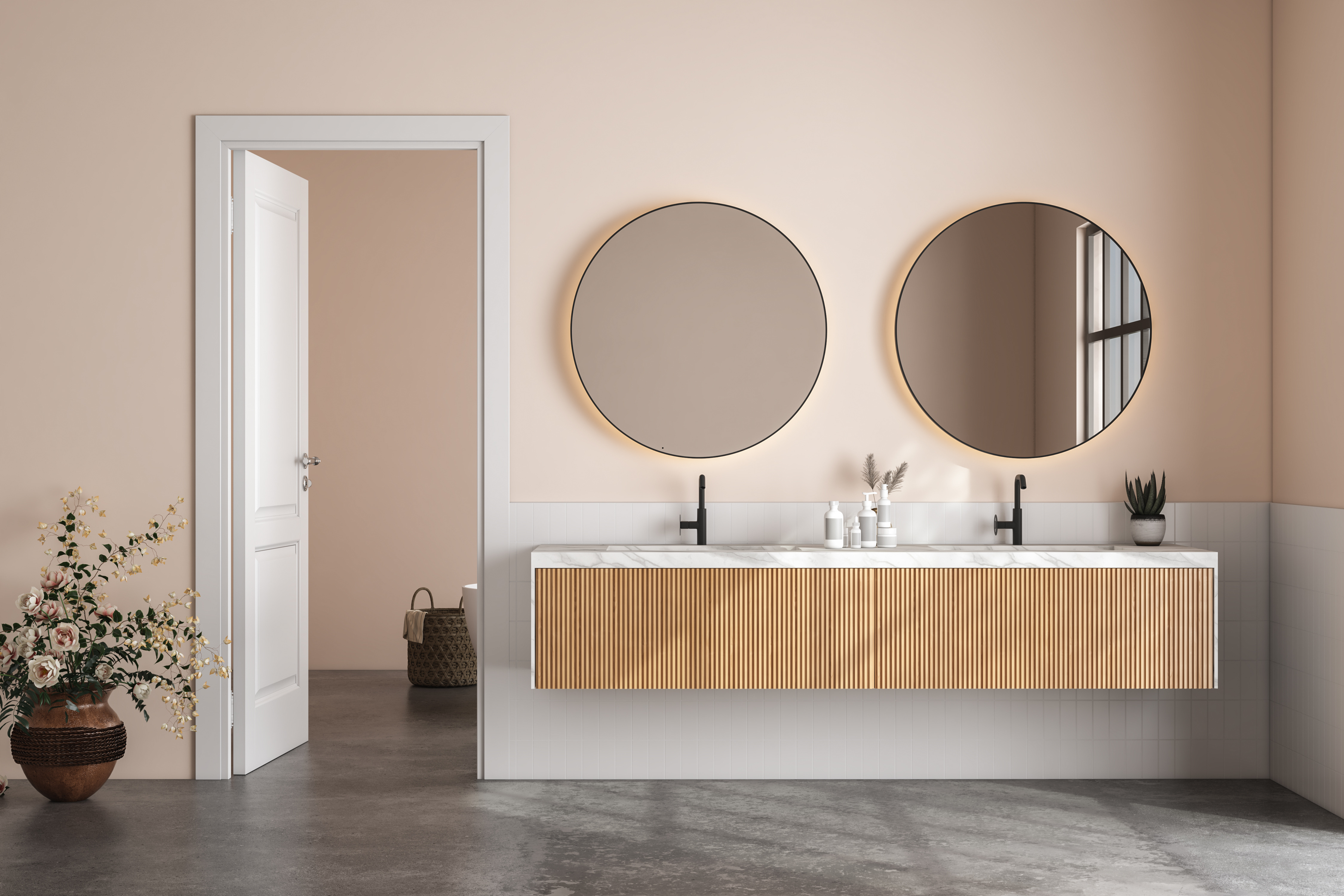 - Let op verlichting – LED-spiegels verbeteren de functionaliteit en geven de ruimte een moderne uitstraling.